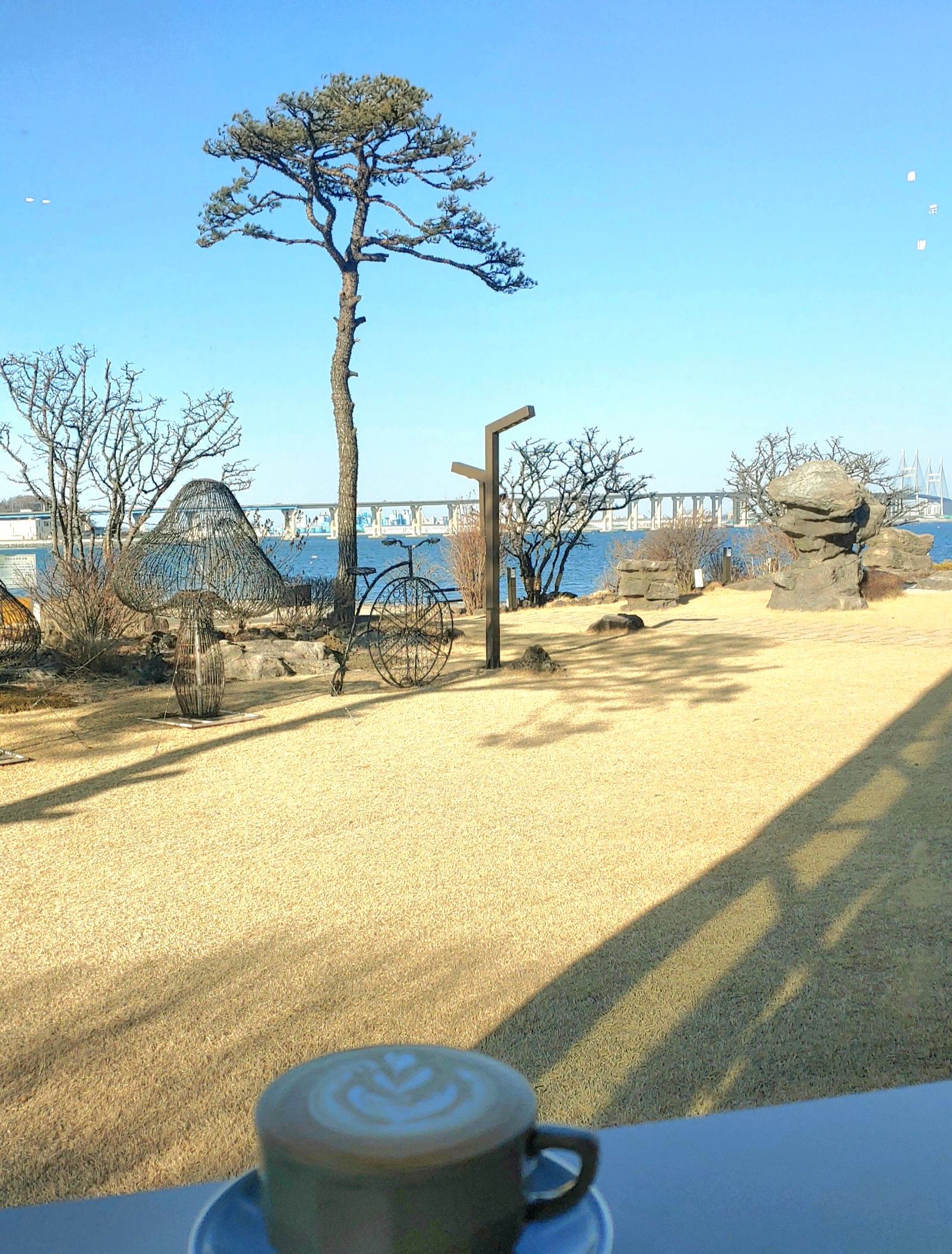 1층 야외 공간은 바다를 향해 있어서 맑고 따뜻한 날 사진을 찍거나 산책을 하기 좋다.