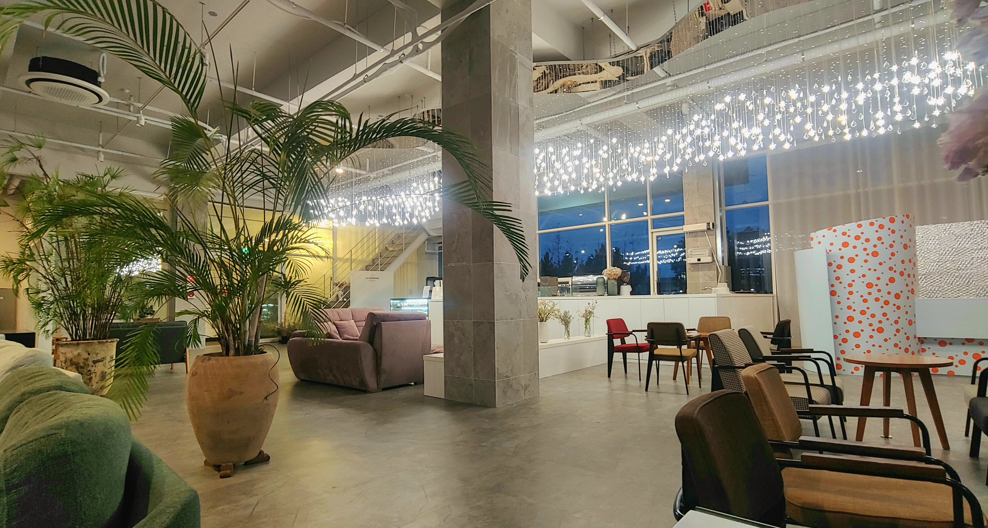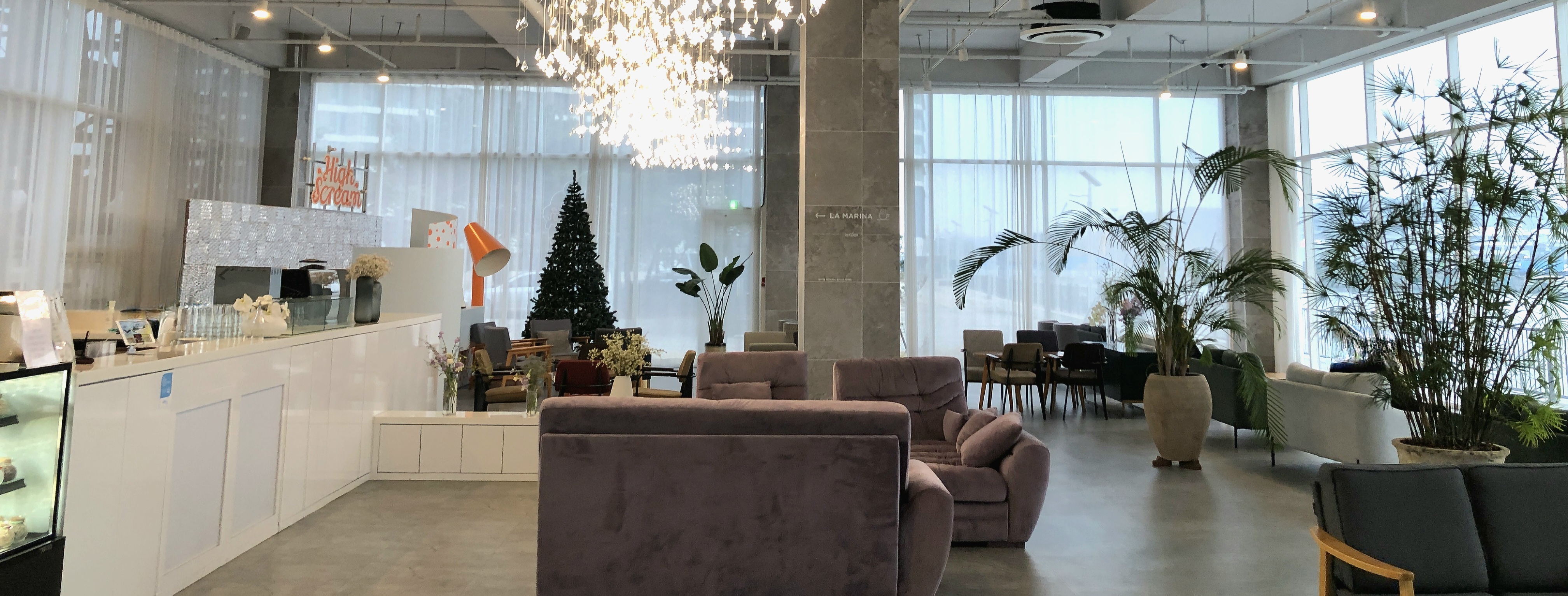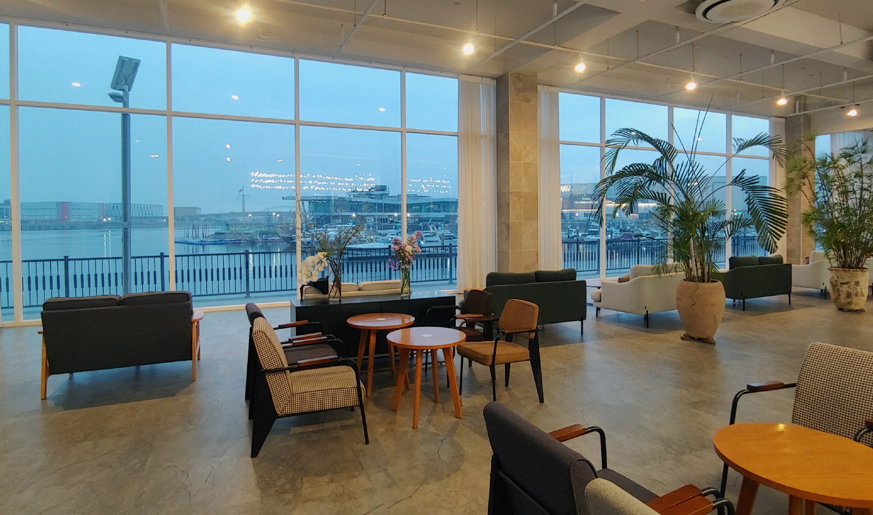 아라뱃길 방향의 창가에는 2인용 좌석이 있어서 층고가 높은 통창을 통해서 아라뱃길과 요트 선착장을 볼 수 있다. 해질 무렵에 가면 시간대에 따라서 달라지는 뷰를 즐길 수 있다.