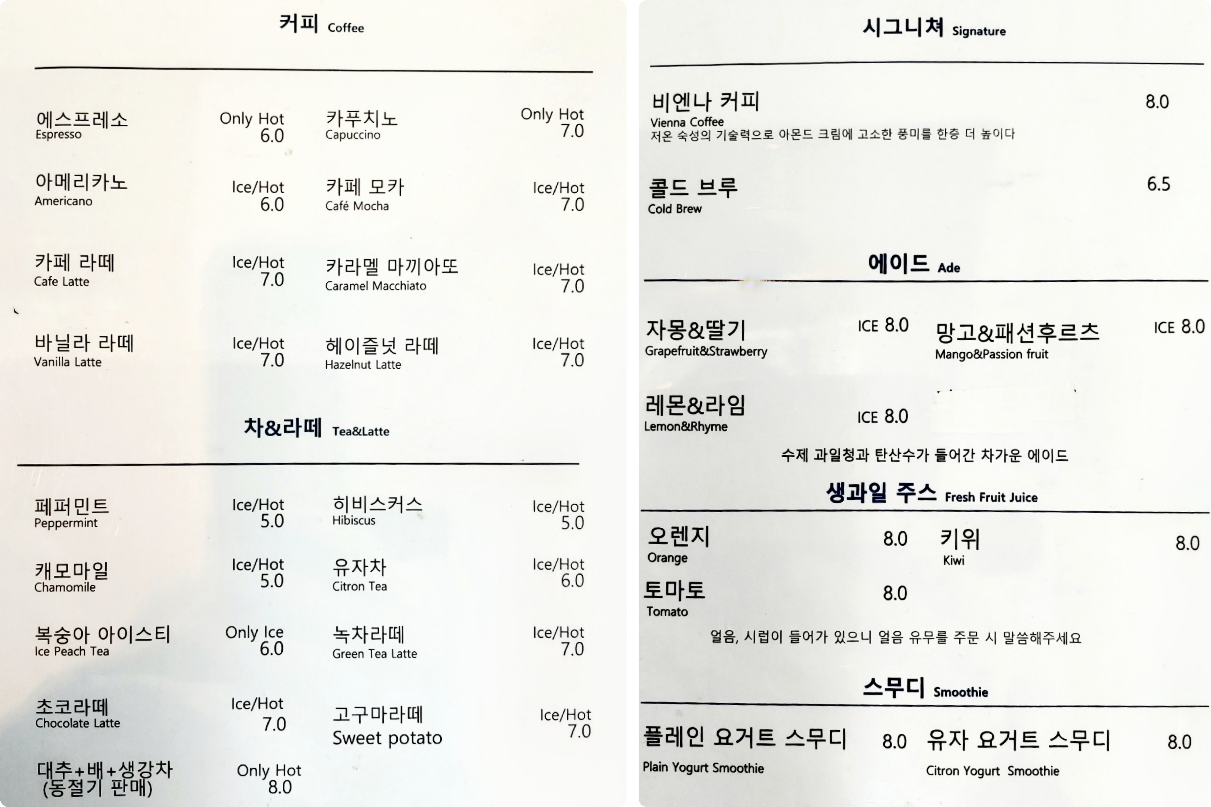 · 유형 : 호수뷰, 카페, 진동벨(음료)/자리로 가져다 줌(식사)