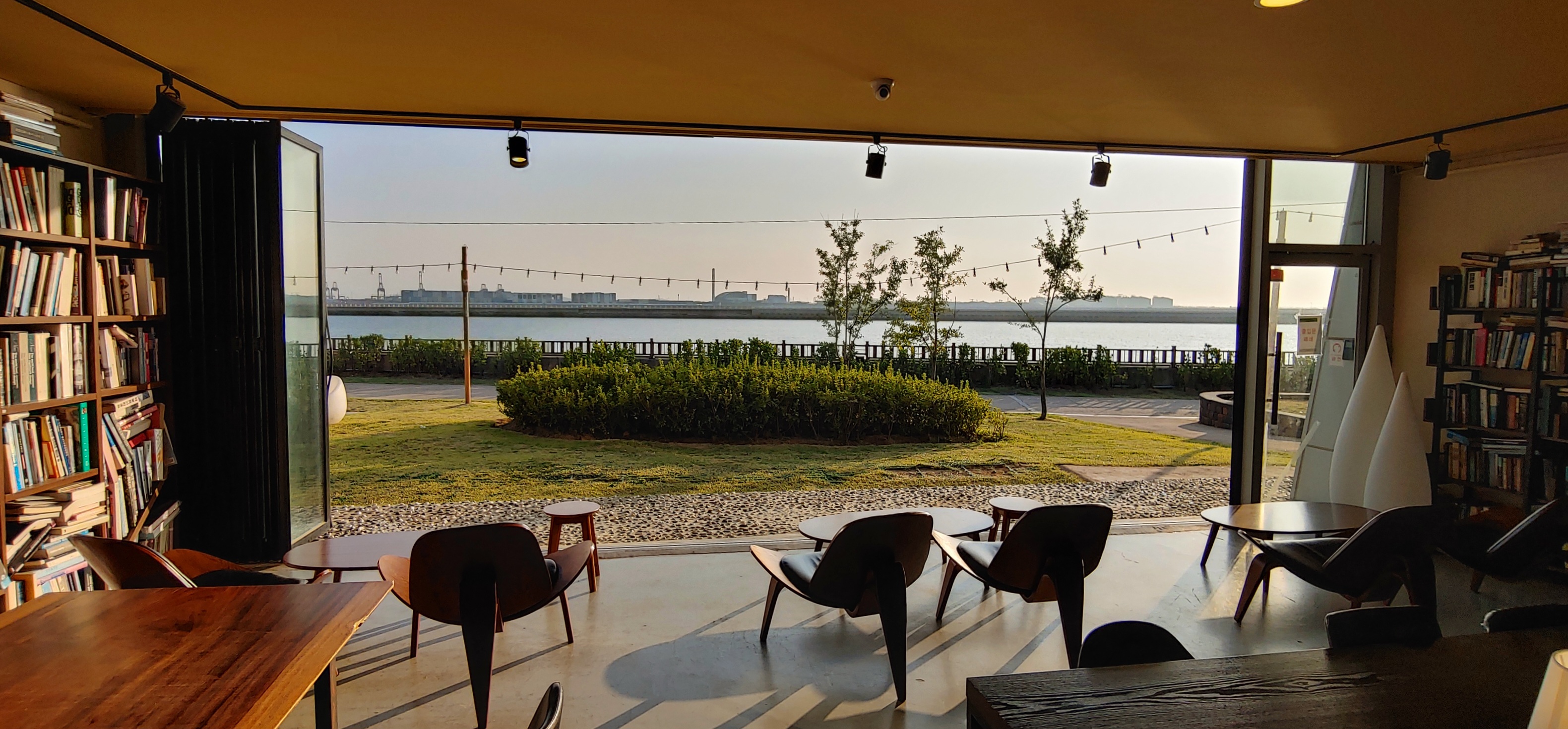날씨가 춥거나 덥지 않을 때는 폴딩도어를 열어둬서 카페 안에서도 바다뷰를 즐기기 좋다.