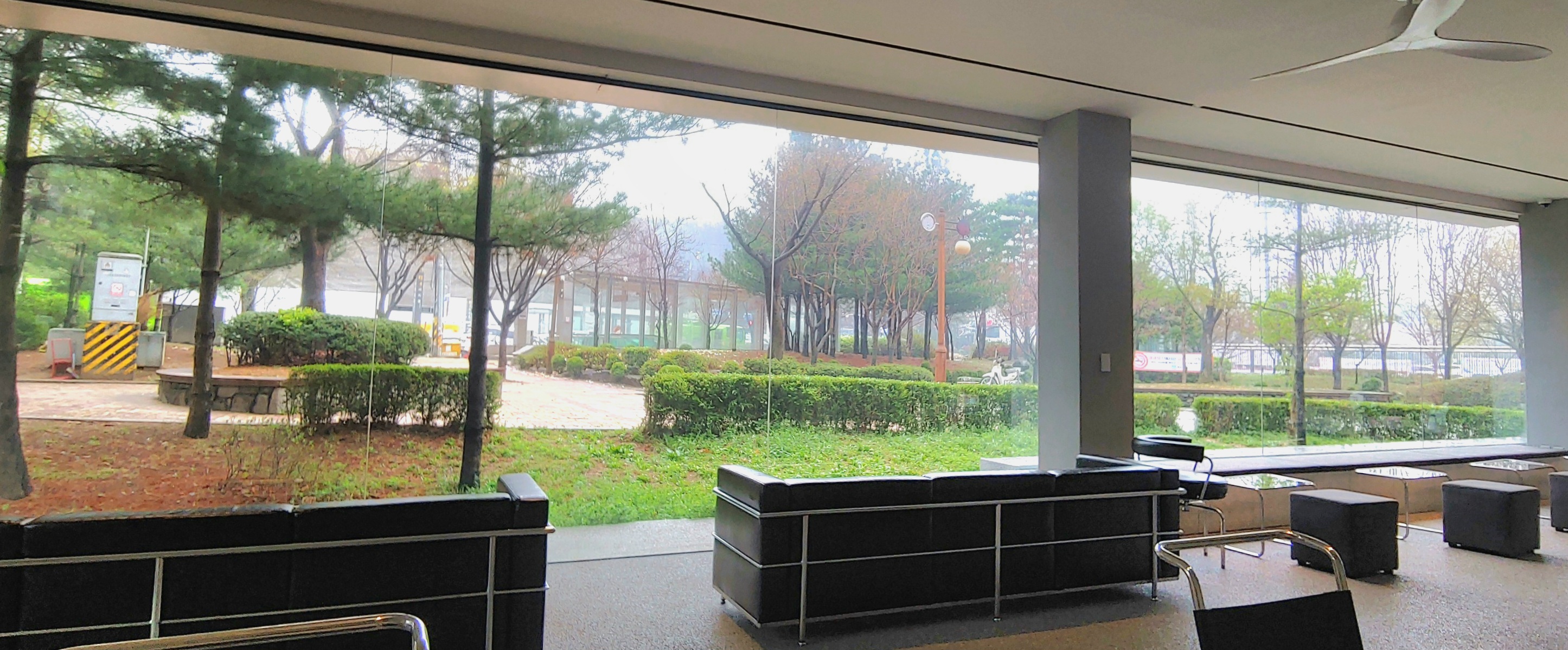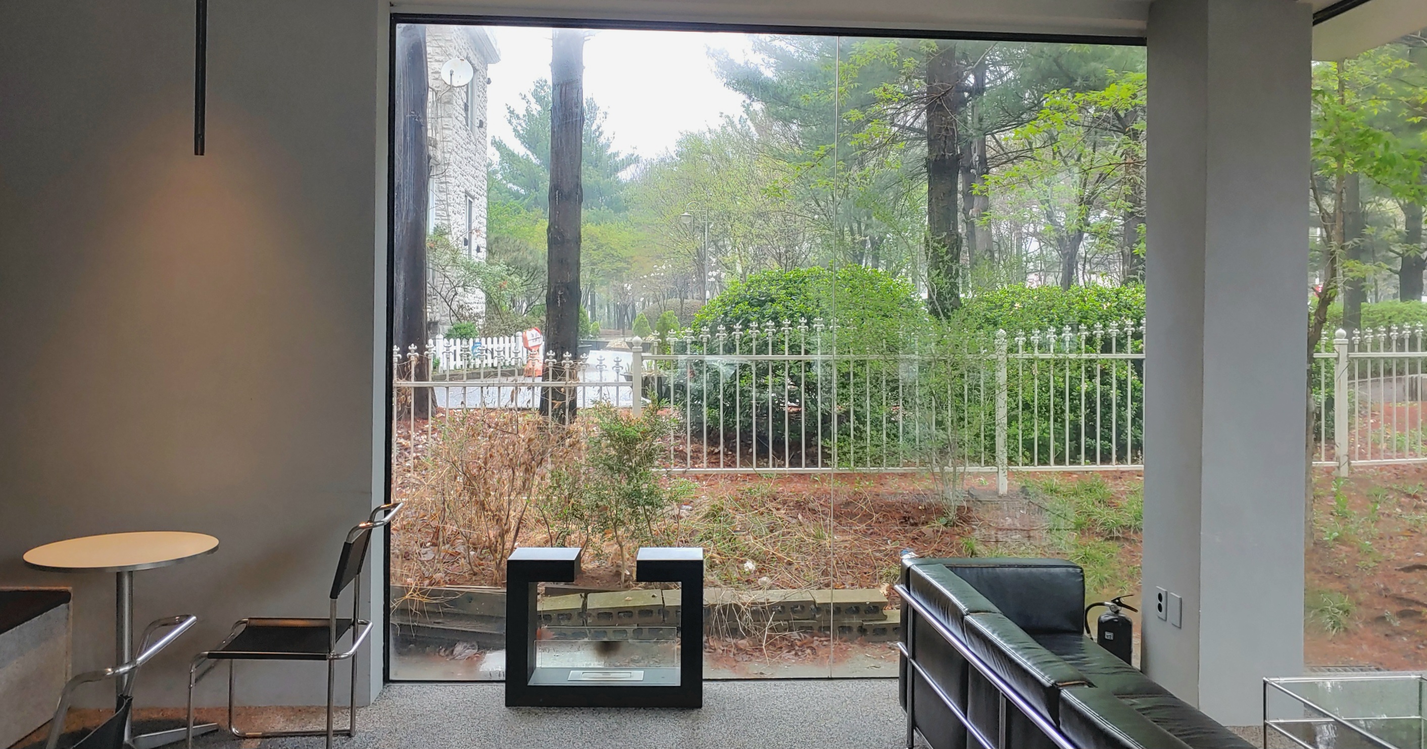 카페의 크기가 크지 않아서 어디서나 야외를 바라보기 좋다. 비가 오는 날도 분위기를 즐기기 좋다.