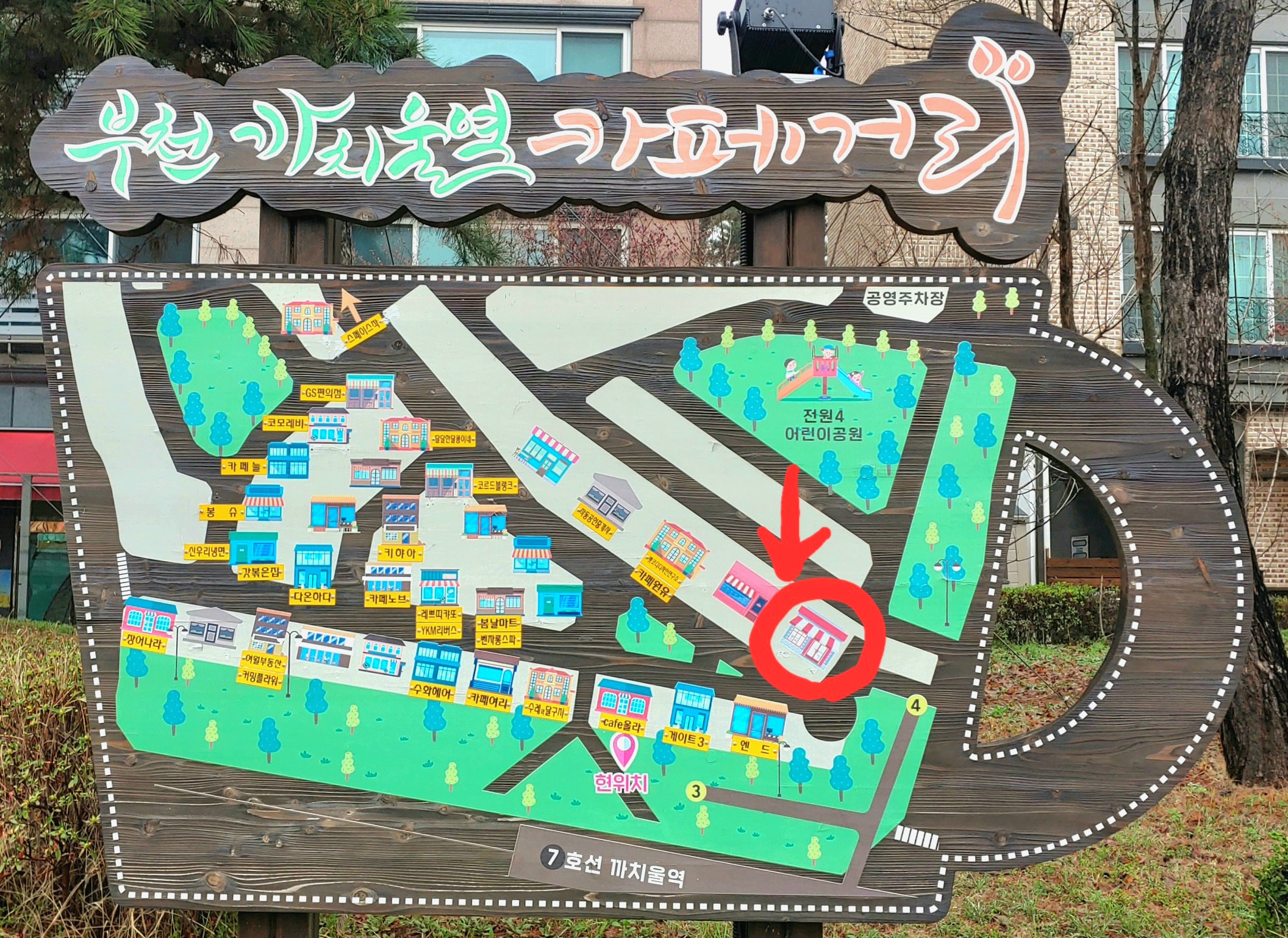 부천 까치울역 3, 4번 출구에 상가주택 단지에 카페거리가 있다. 리세스커피는 4번 출구 도보 1분 거리에 있다.