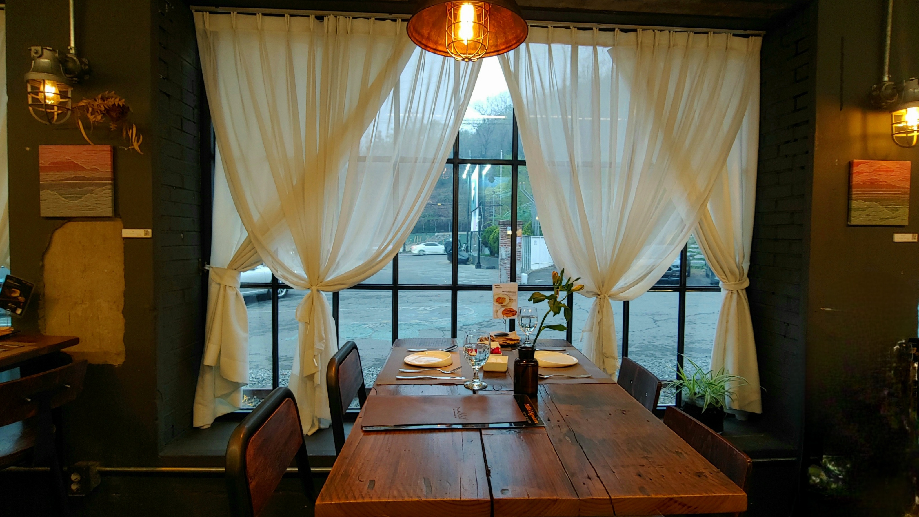 라운드 테이블을 중심으로 안쪽에는 단체가 앉을 수 있는 벤치형 좌석이 있다. 창가에는 4인용 테이블이 여러 개가 있다. 출입구 맞은편에는 독특한 형태의 좌식 테이블도 있다.