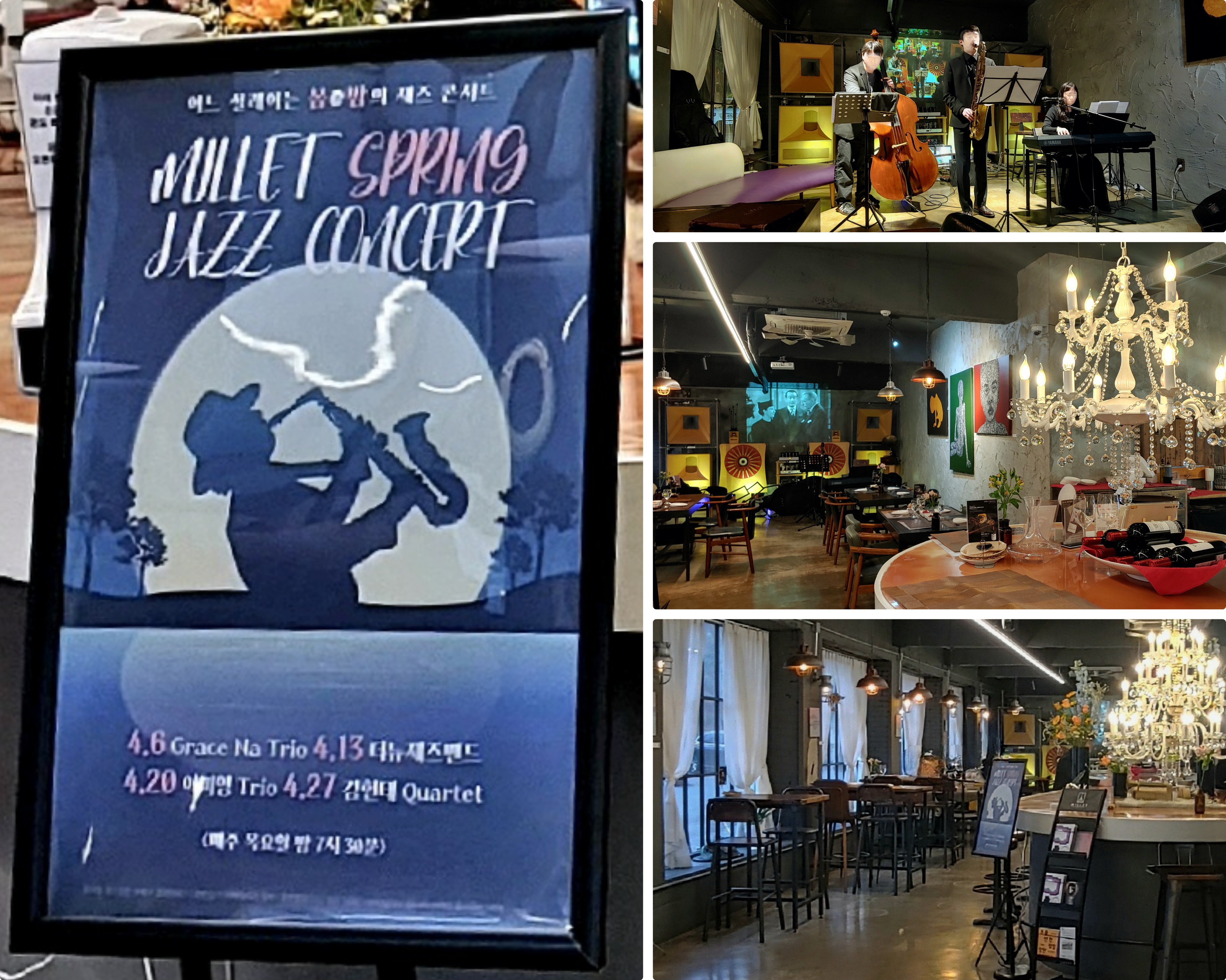 카페 안쪽에 악기 연주가 가능한 공간에서 매주 목요일 7시 30분부터 8시 30분까지 재즈 공연이 있다. 가까이서 공연을 보고 싶다면 전화로 미리 예약을 하면 된다.
