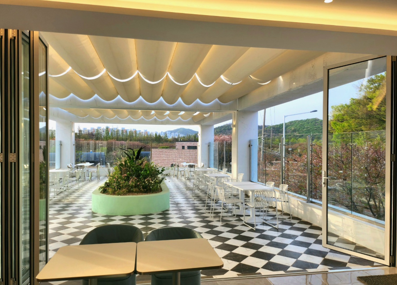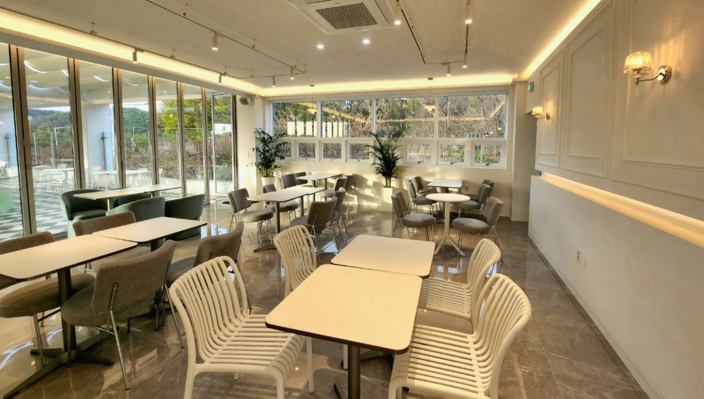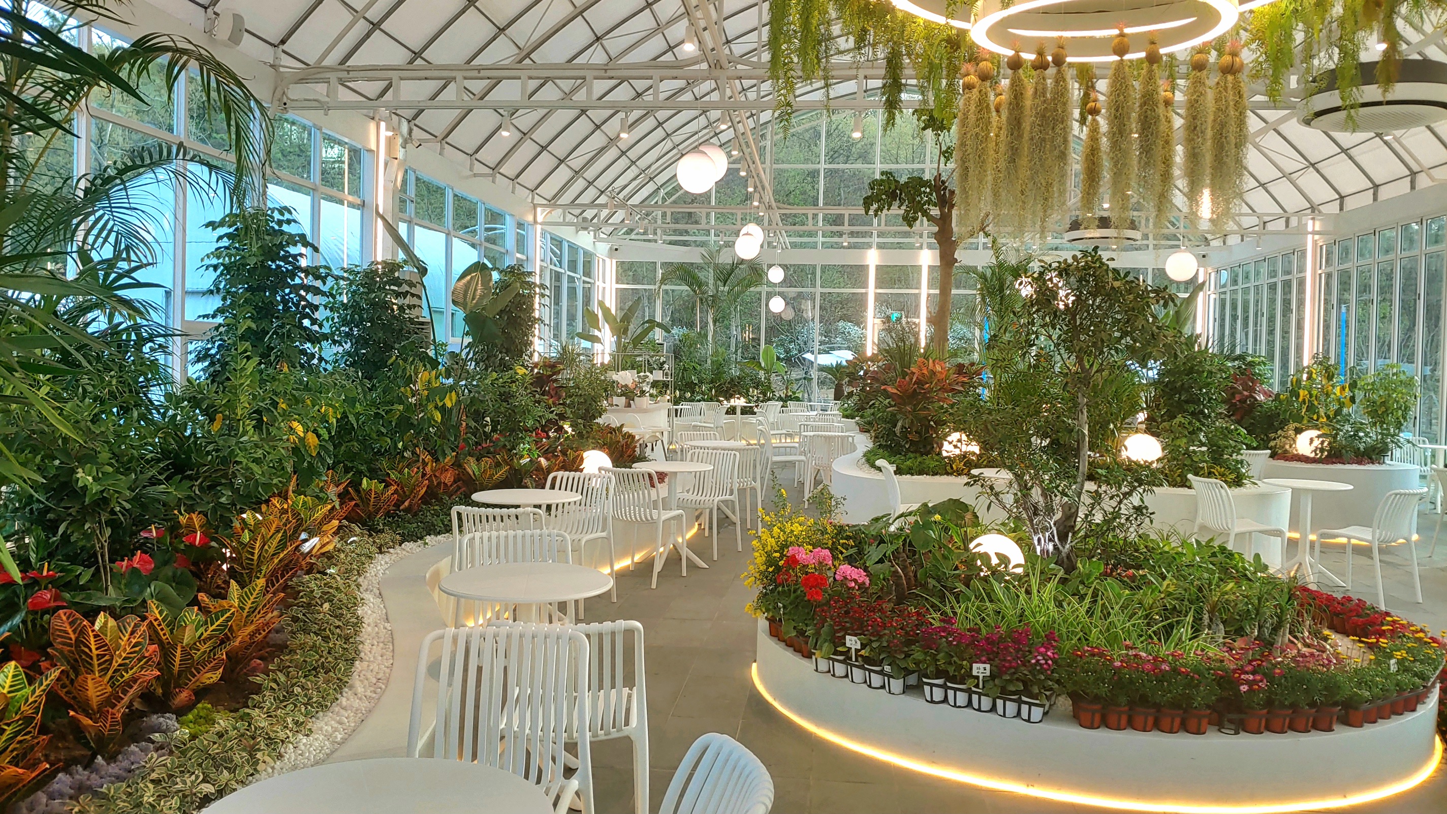 식물원 내부에도 테이블들이 많다. 날씨와 상관없이 커피를 즐길 수 있다.