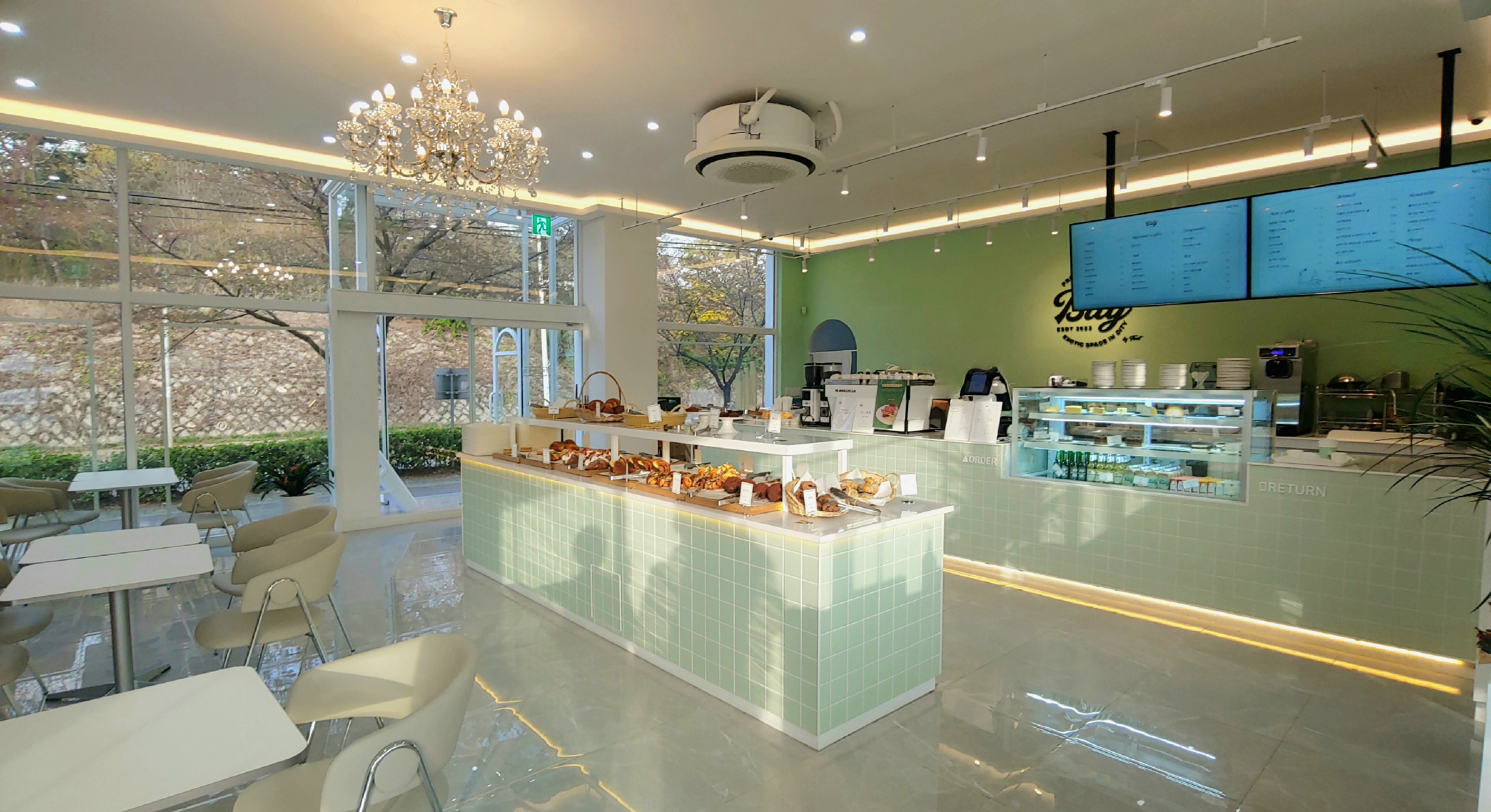 주차장에서 1층 카페 입구로 들어가면 왼쪽에 카운터가 보인다.