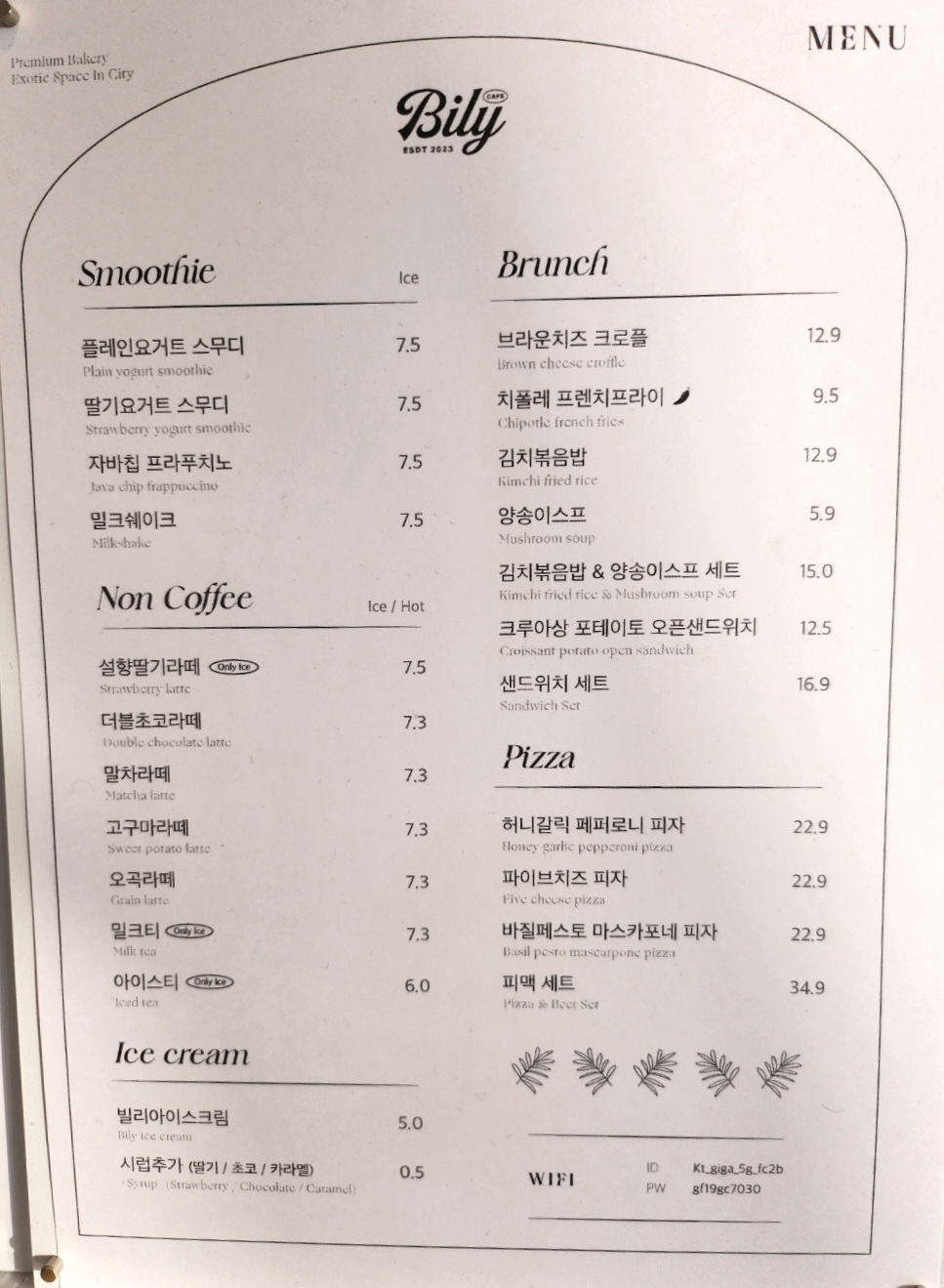 음료 가격은 프랜차이즈 카페보다 조금 높은 수준이다. 브런치와 피자 메뉴도 판매한다.