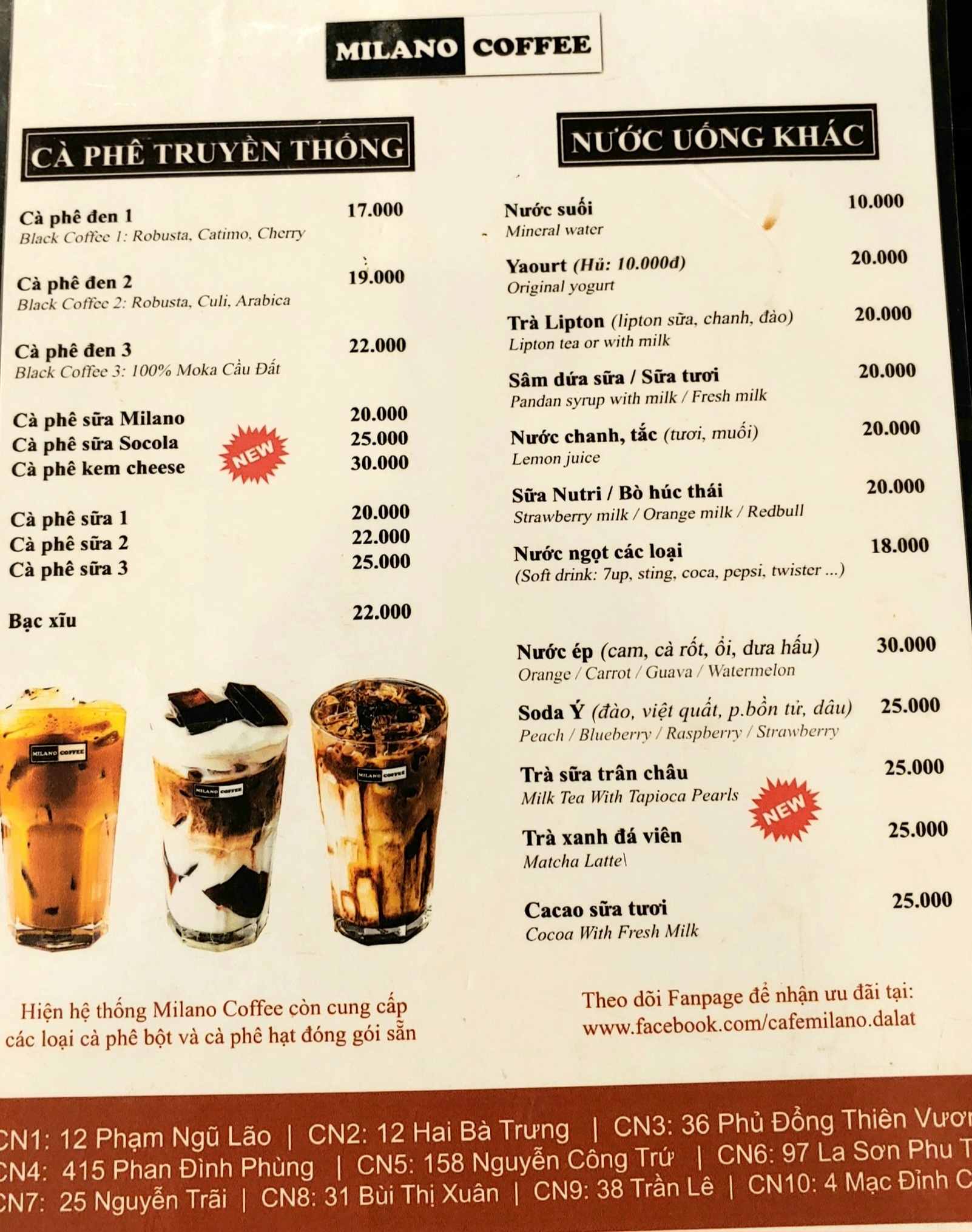 밀라노 커피는 베트남 달랏 신투어리스트 버스 사무실 가까이 있다.