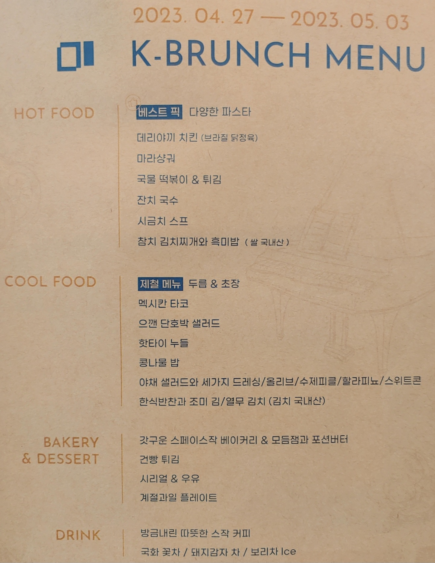 오전에는 3층에서 브런치 뷔페를 먹을 수 있다.