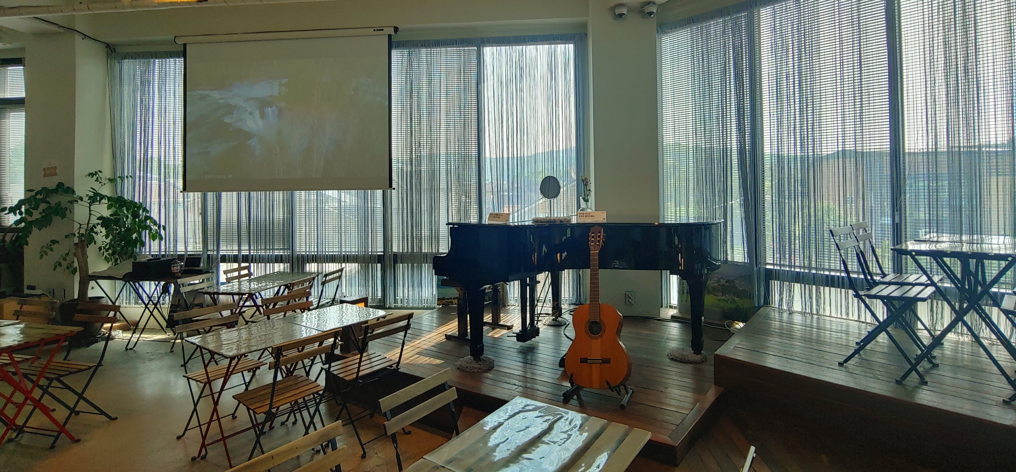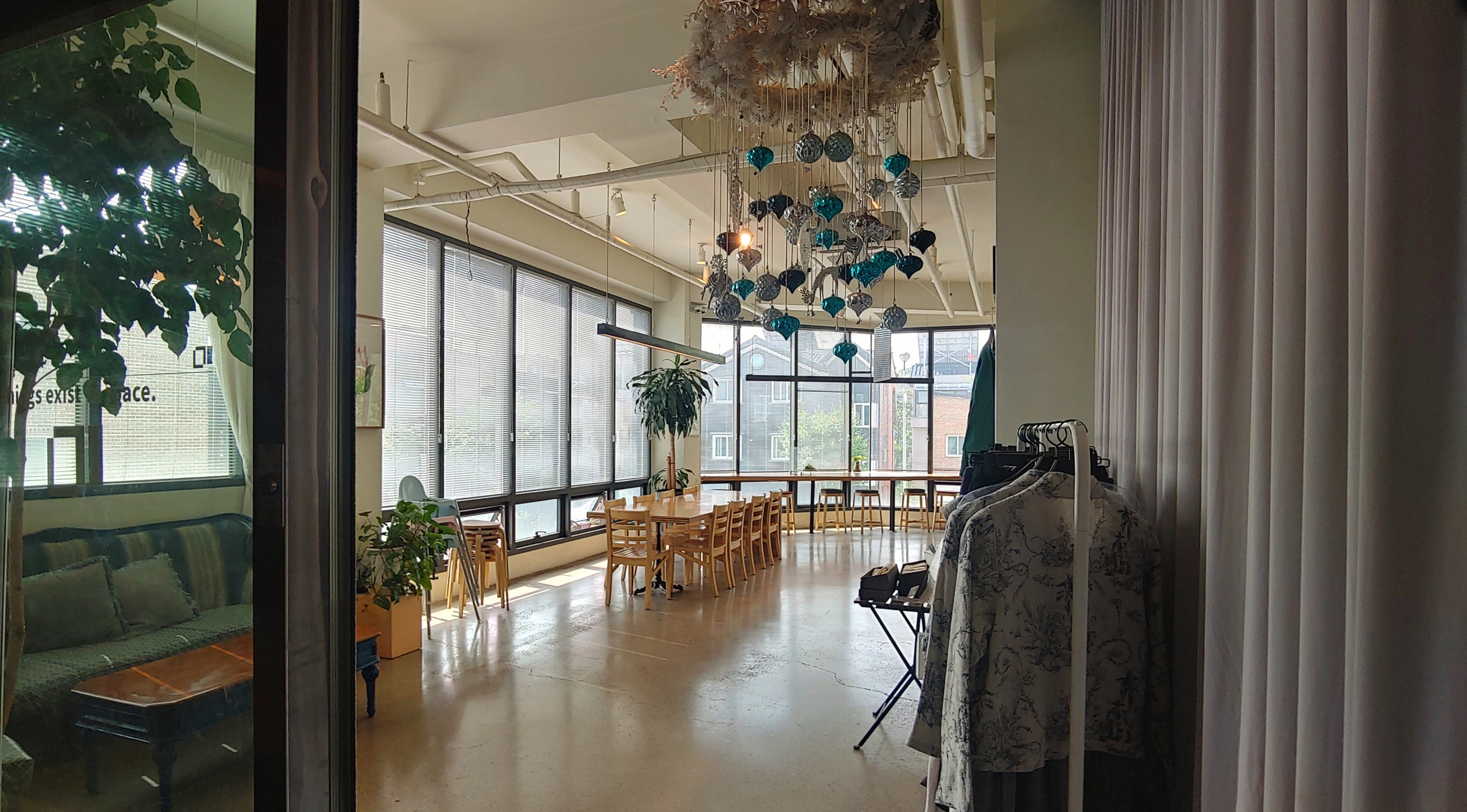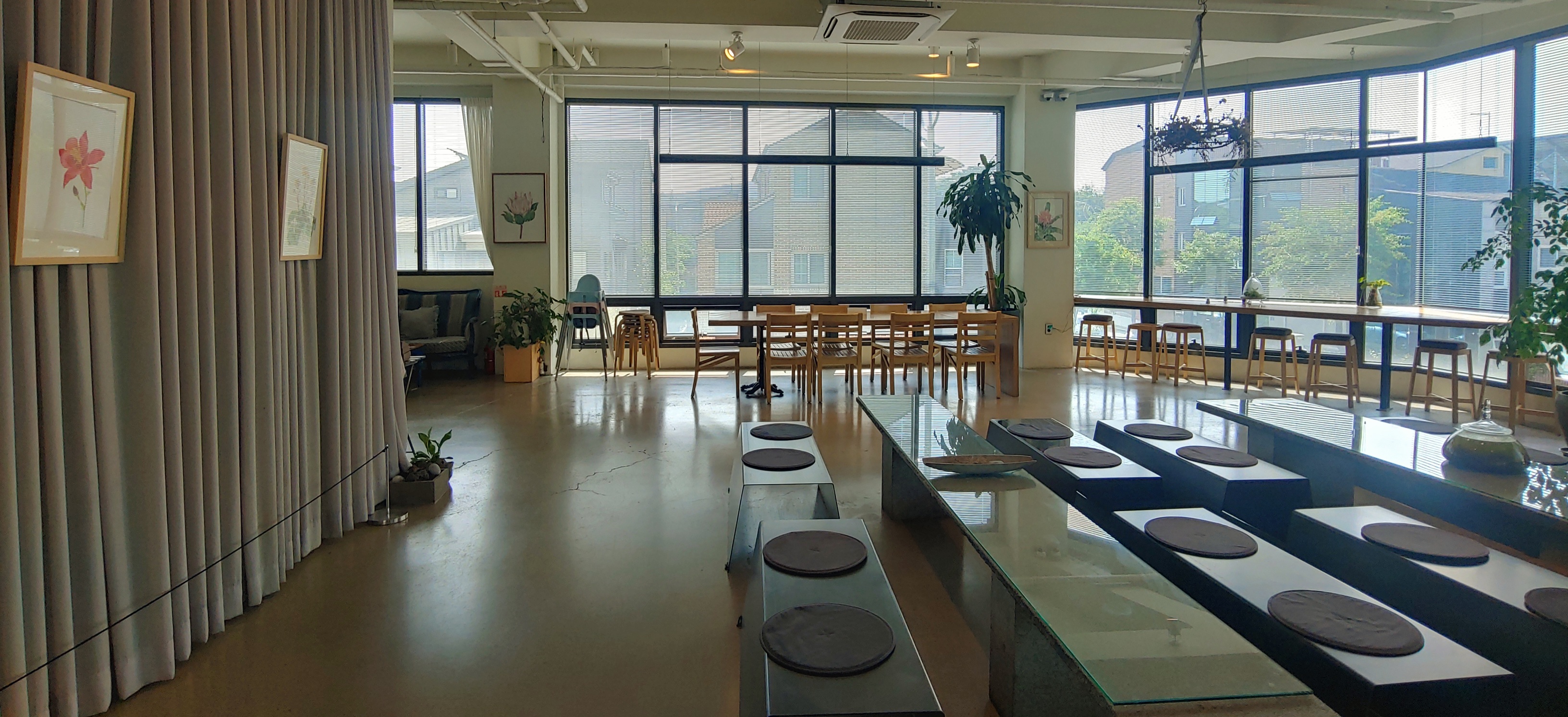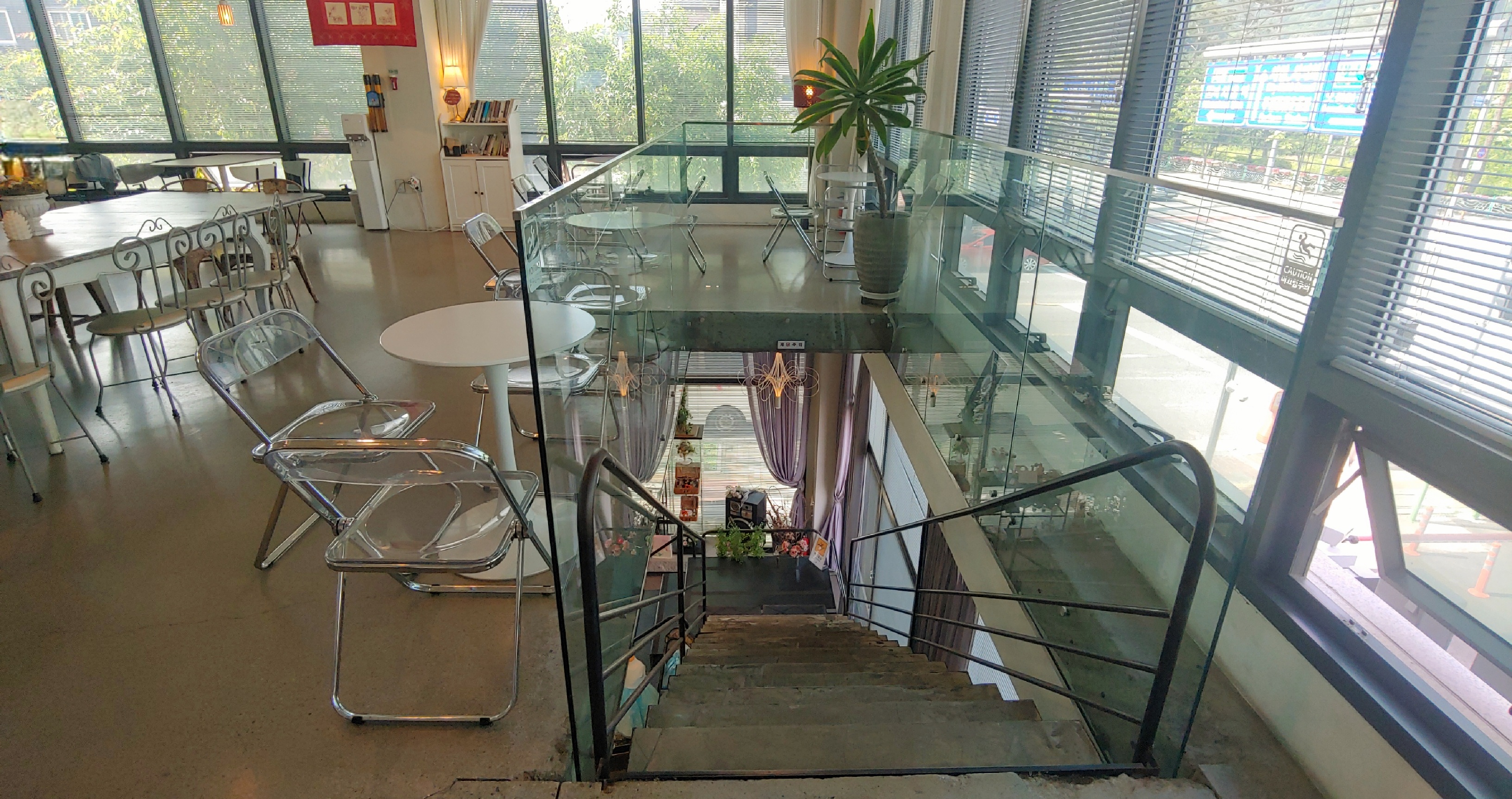 스페이스작은 까치울역 카페거리 끝쪽 4층 건물에 있는 대형 카페이다.