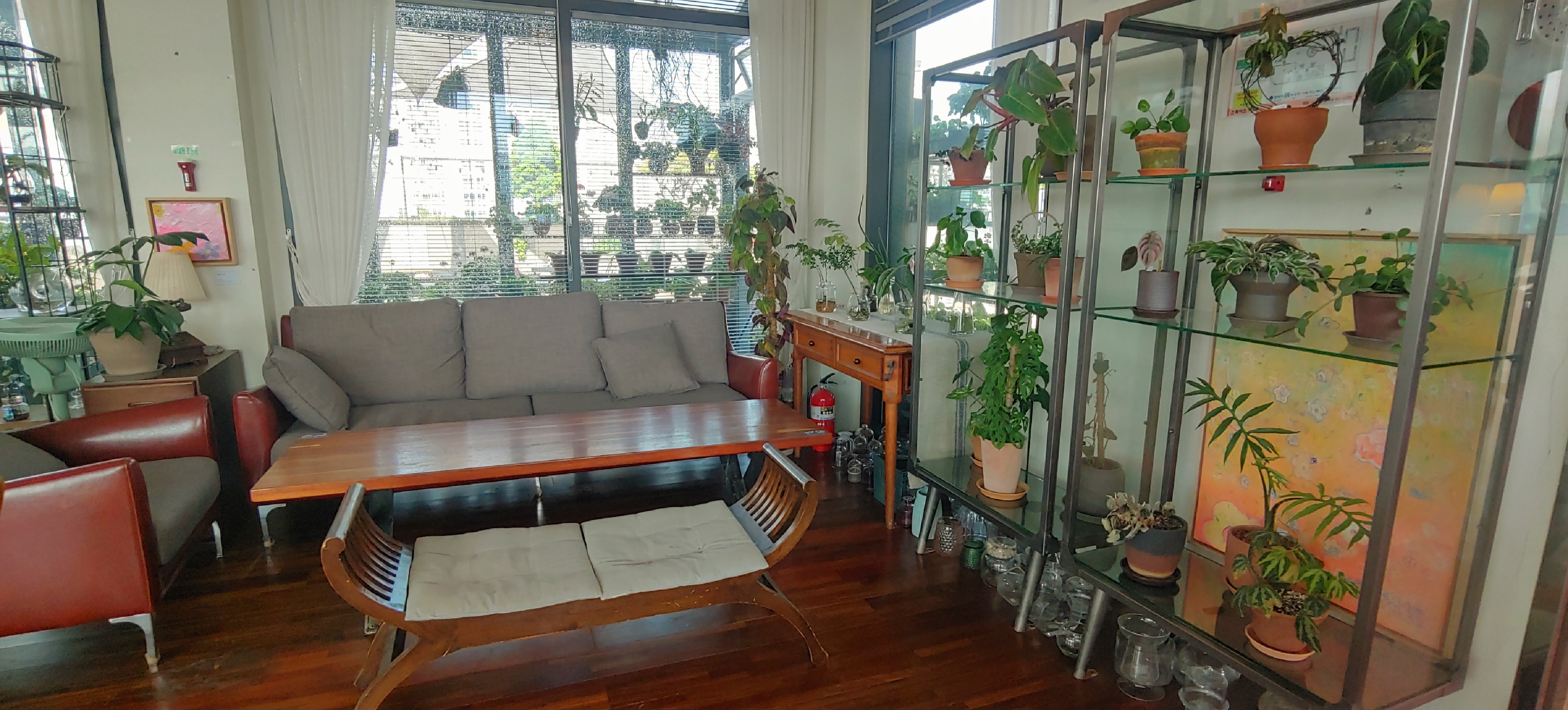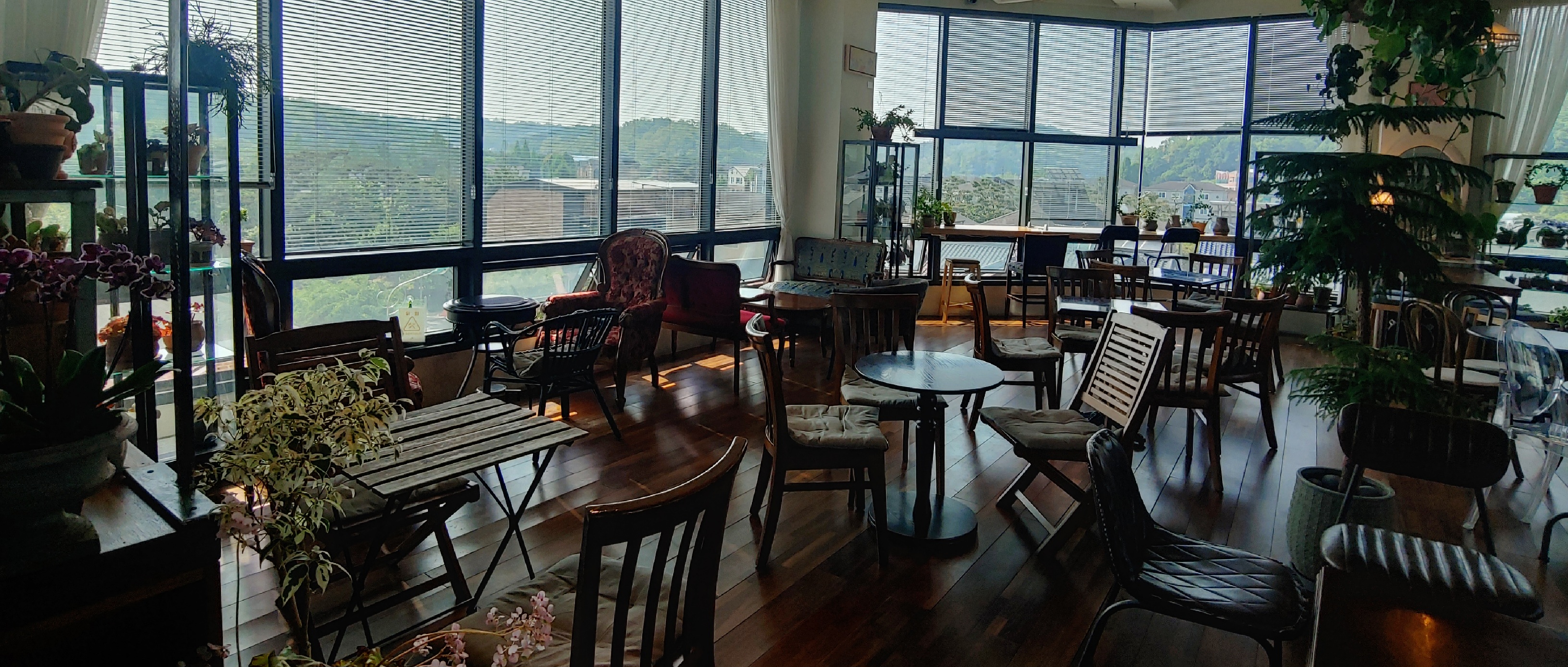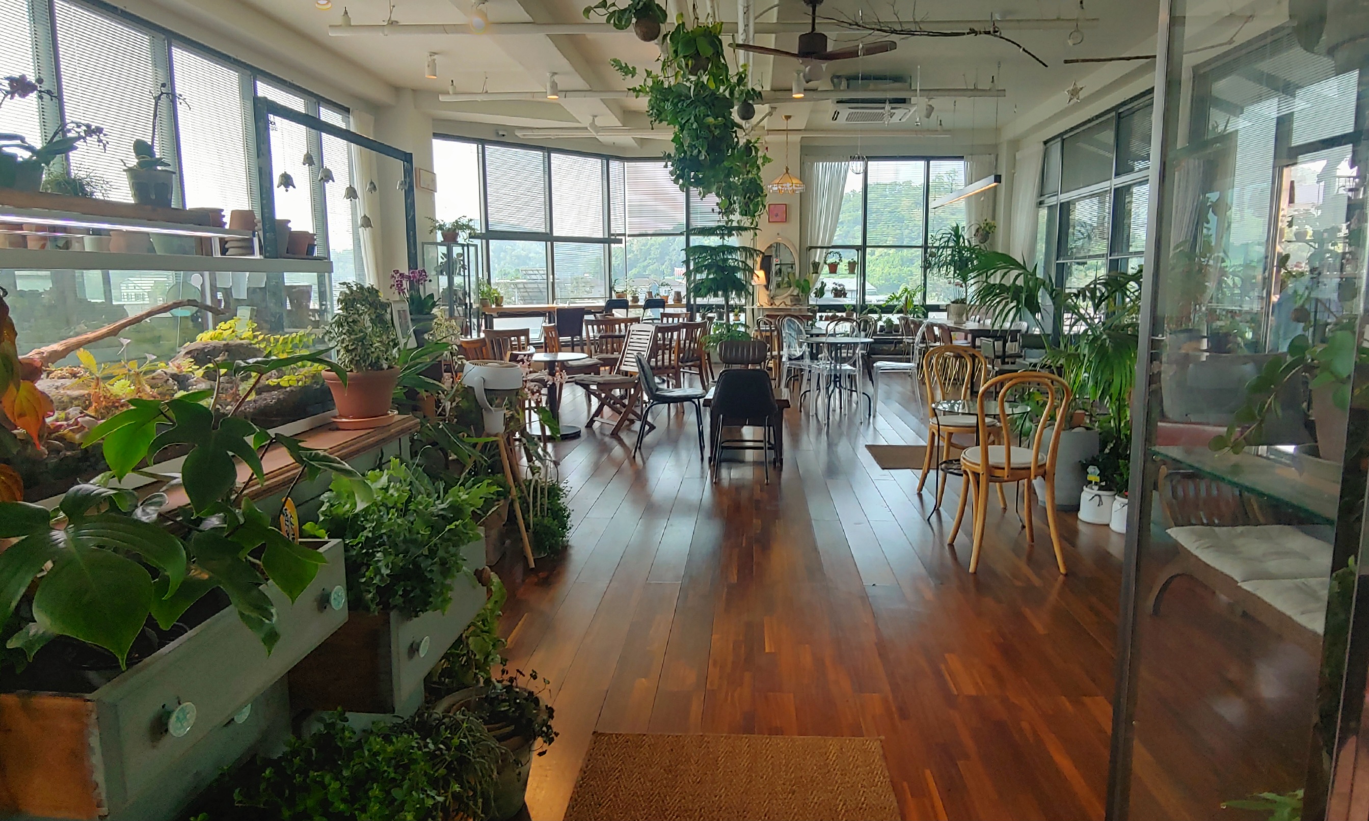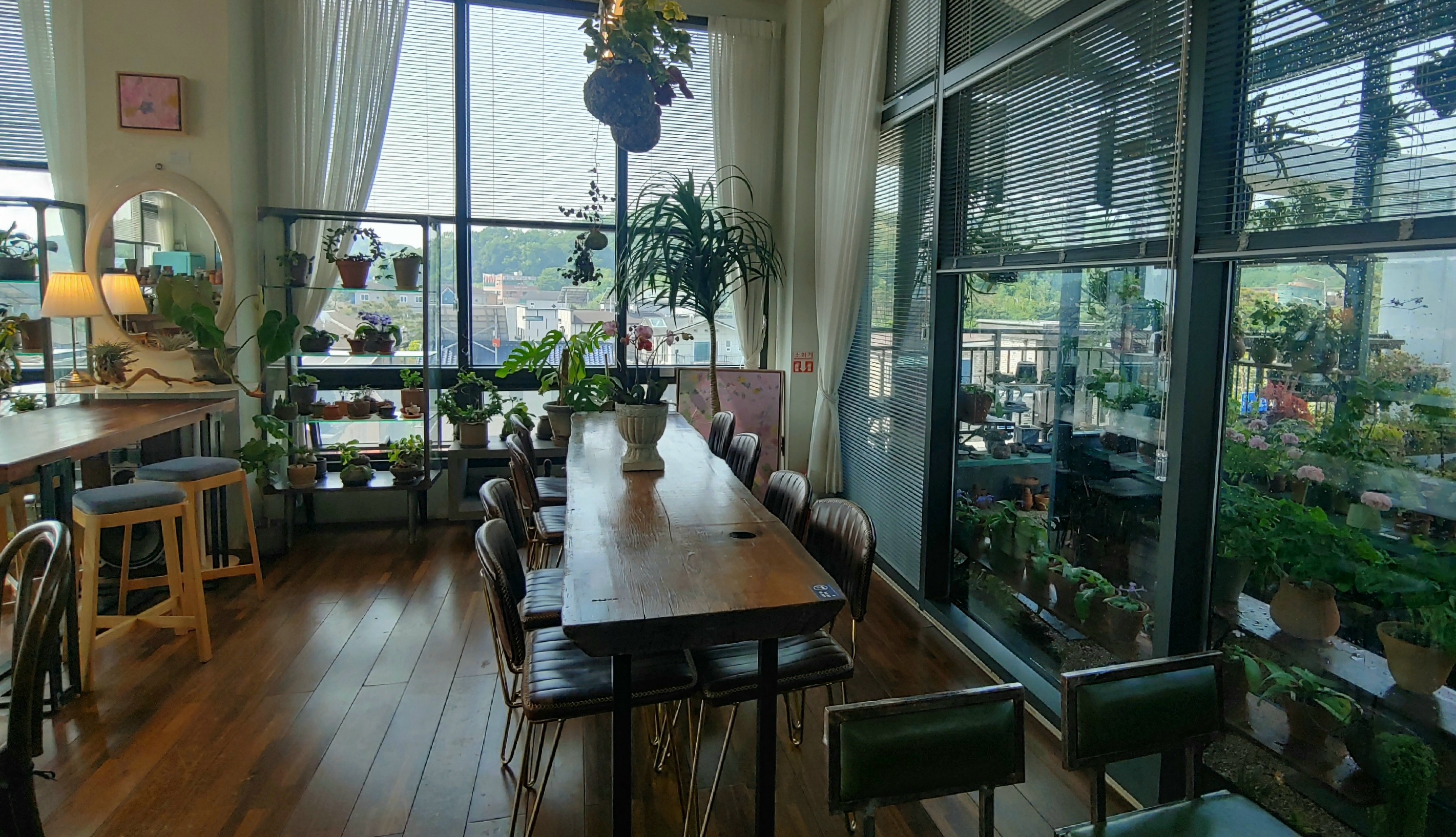 4층 실내는 화원에 테이블이 있는 공간이다.