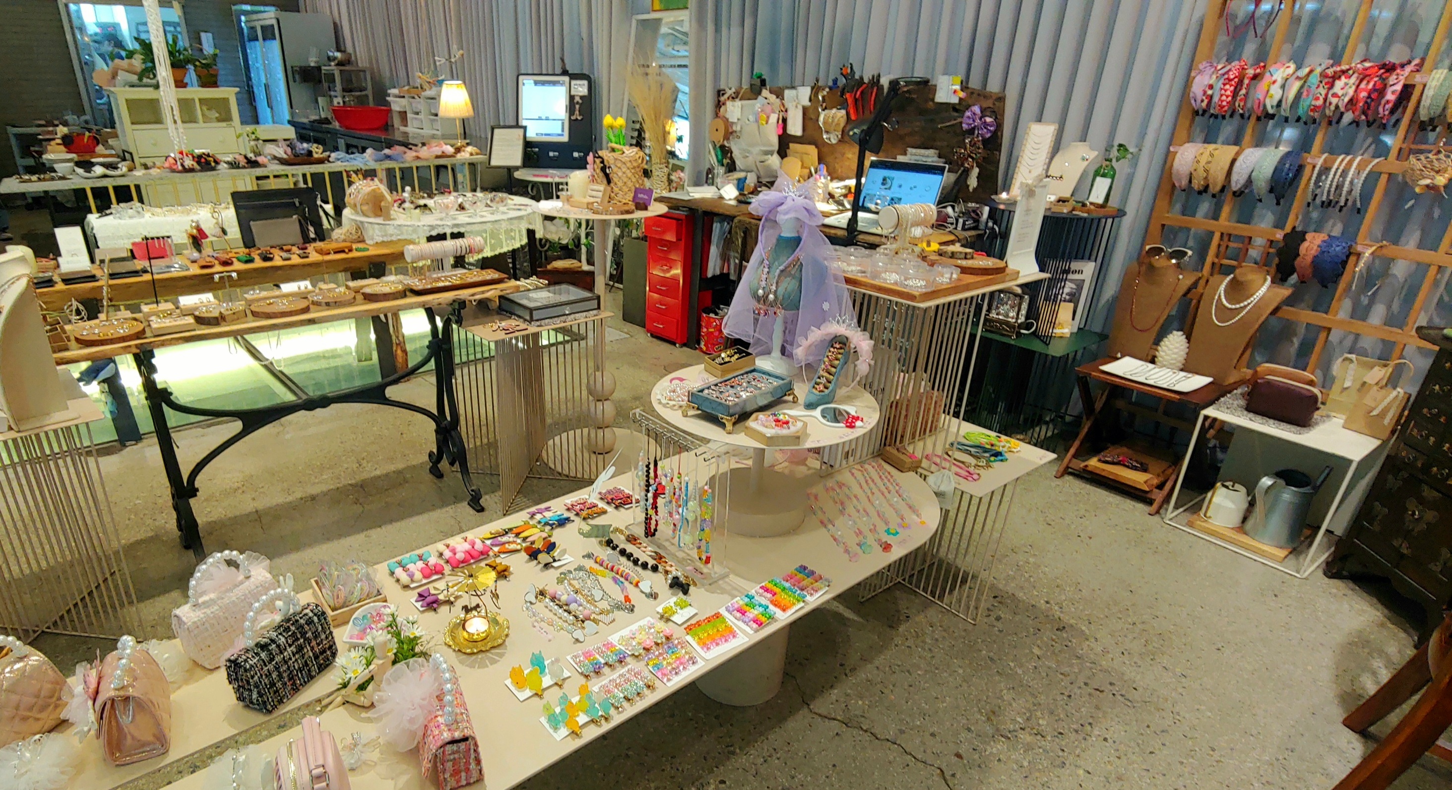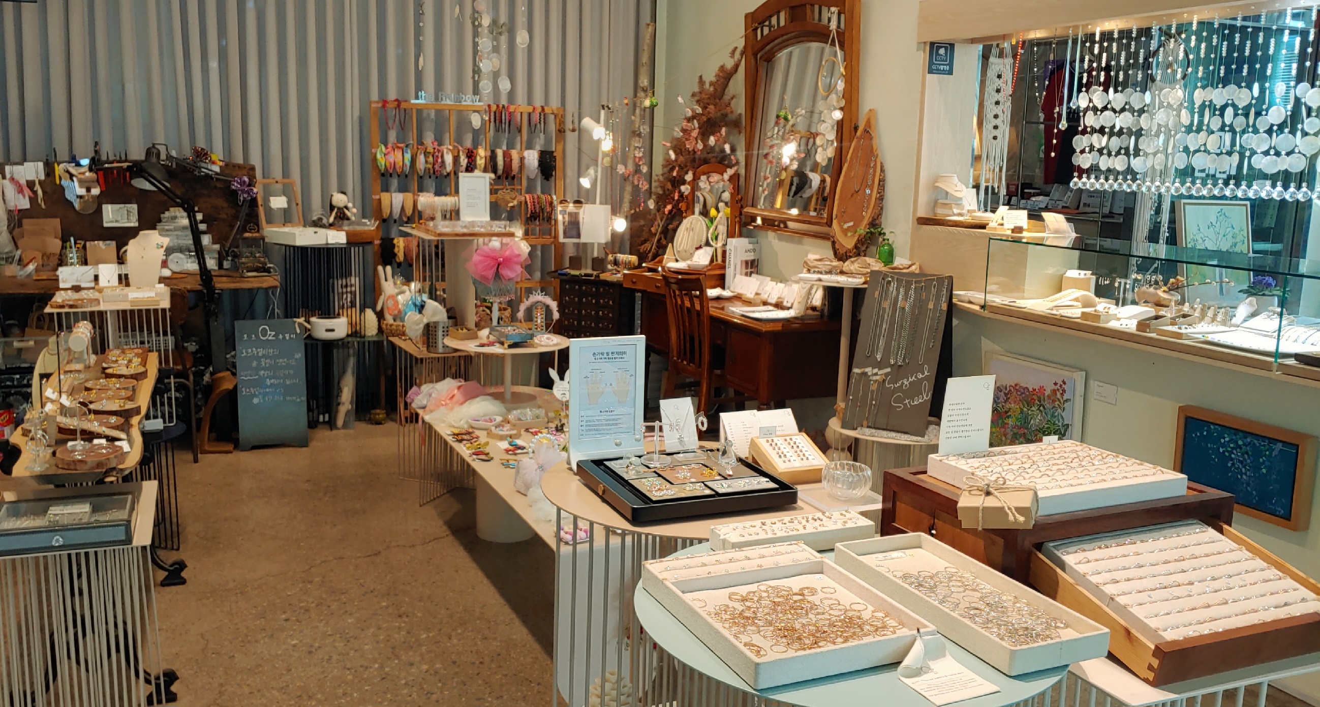카운터 앞 쪽에는 액세서리를 진열하고 판매하는 공간이 있다.