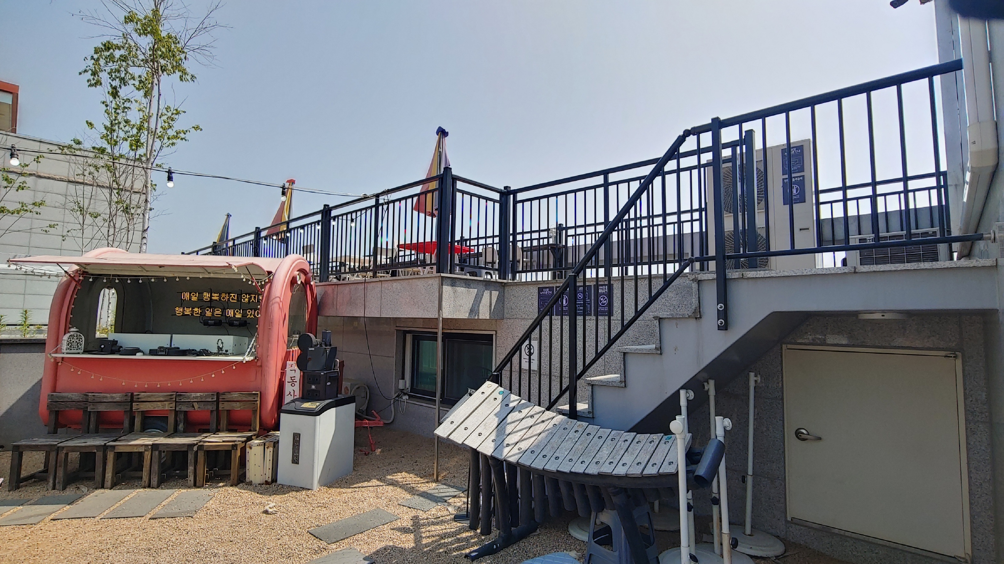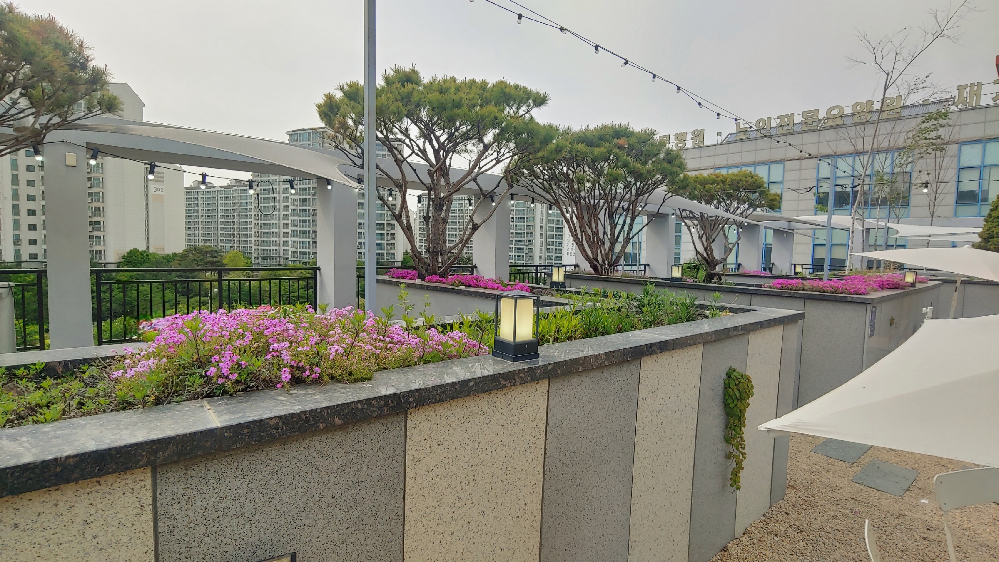 4층 야외에는 원미산을 향해 있는 또 하나의 루프탑 공간이 있다.