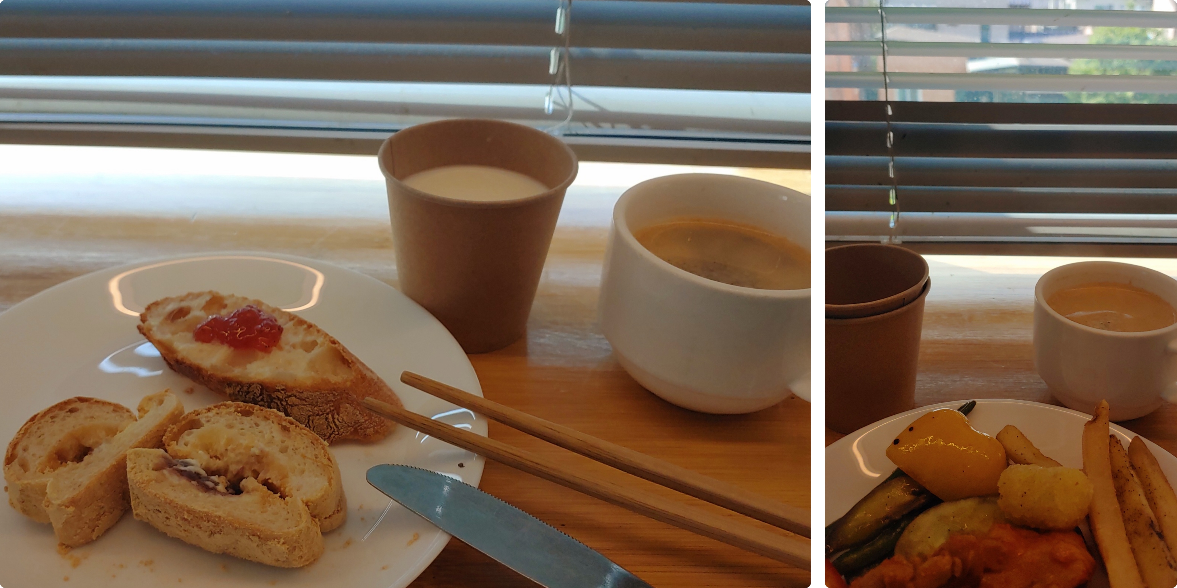 1층에서 가지고 온 음료나 빵을 즐길 수 있다.