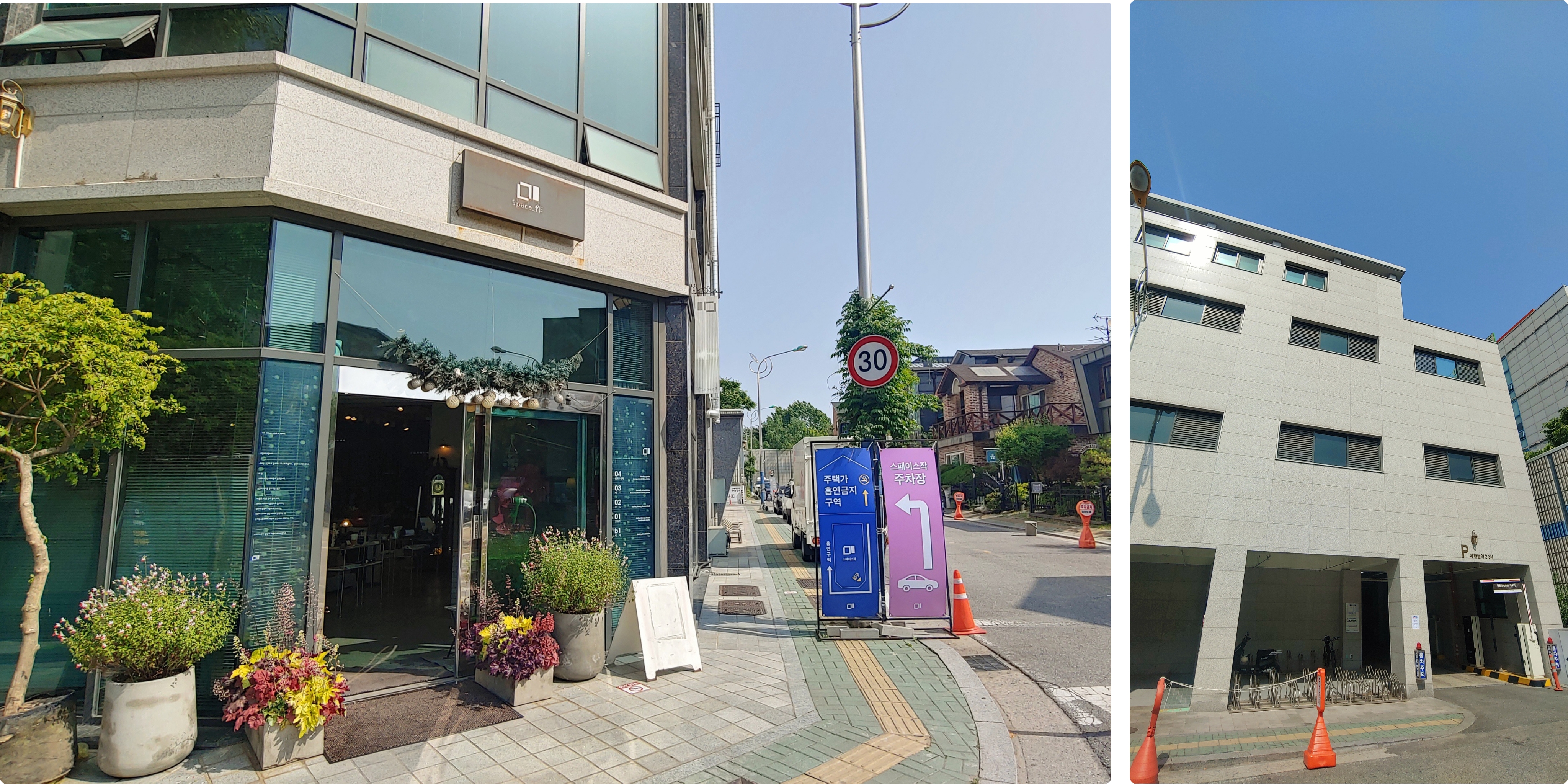 카페 오른쪽으로 돌아가면 건물 주차장 입구가 있다. 1층~3층까지 건물 내부에 주차장이 있지만 방문객 수에 비해서 부족하다. 바로 옆 공영주차장 주차비를 카페에서 구매한 금액에 따라서 차등 지급한다.