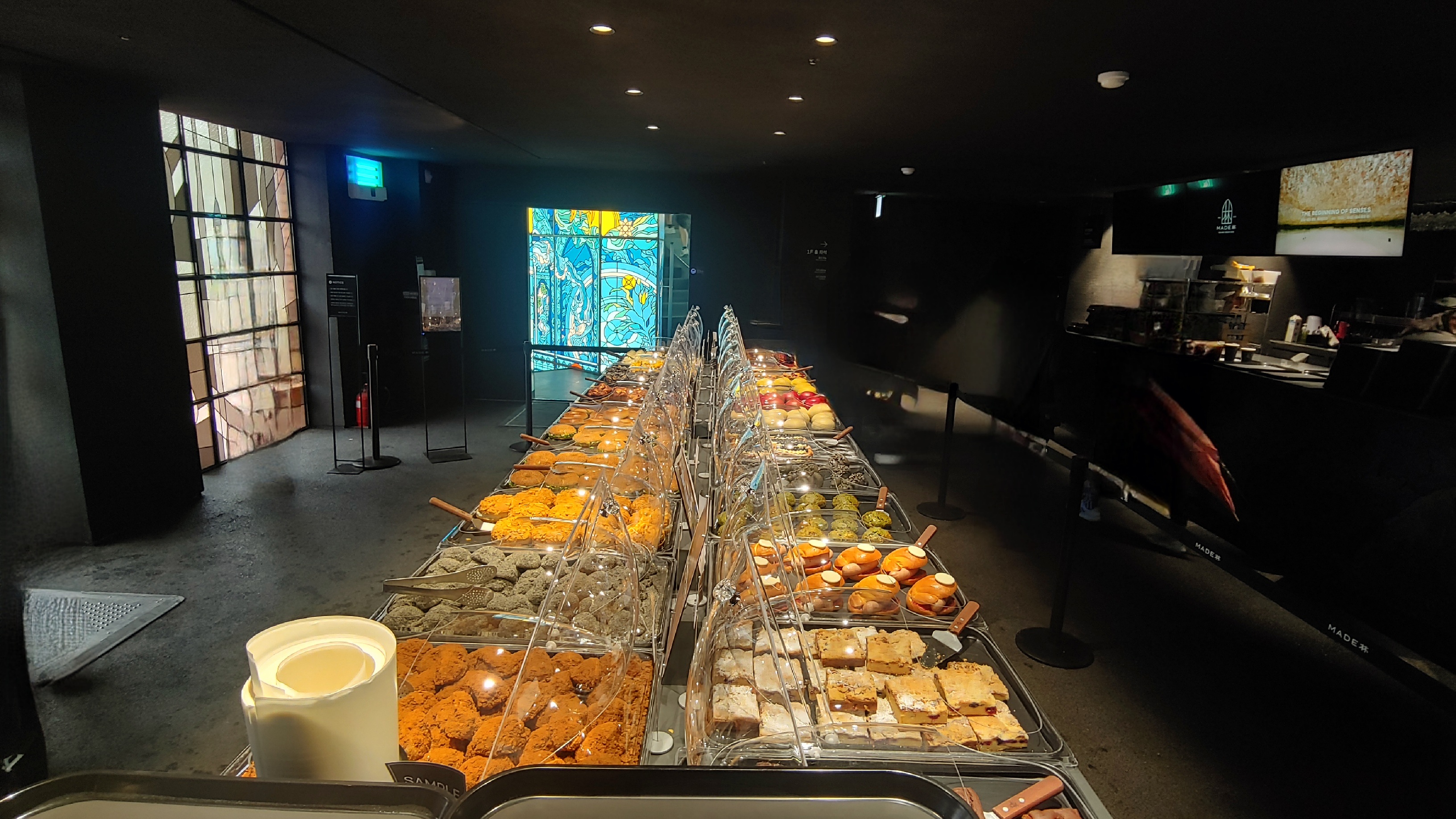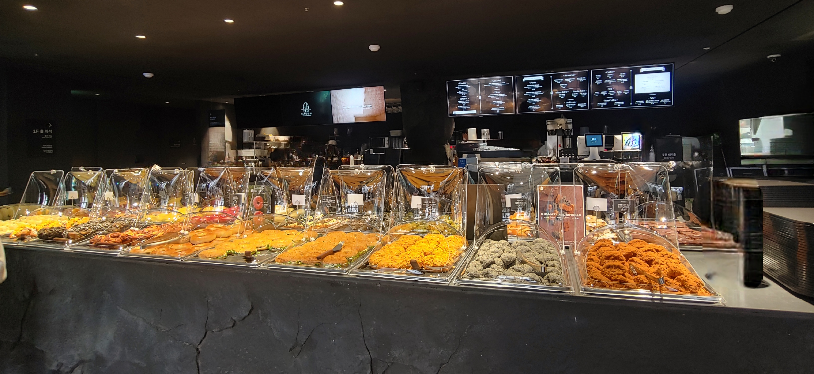 3개의 검은 유리창 중 가운데로 들어가면 빵 진열대가 먼저 보인다.