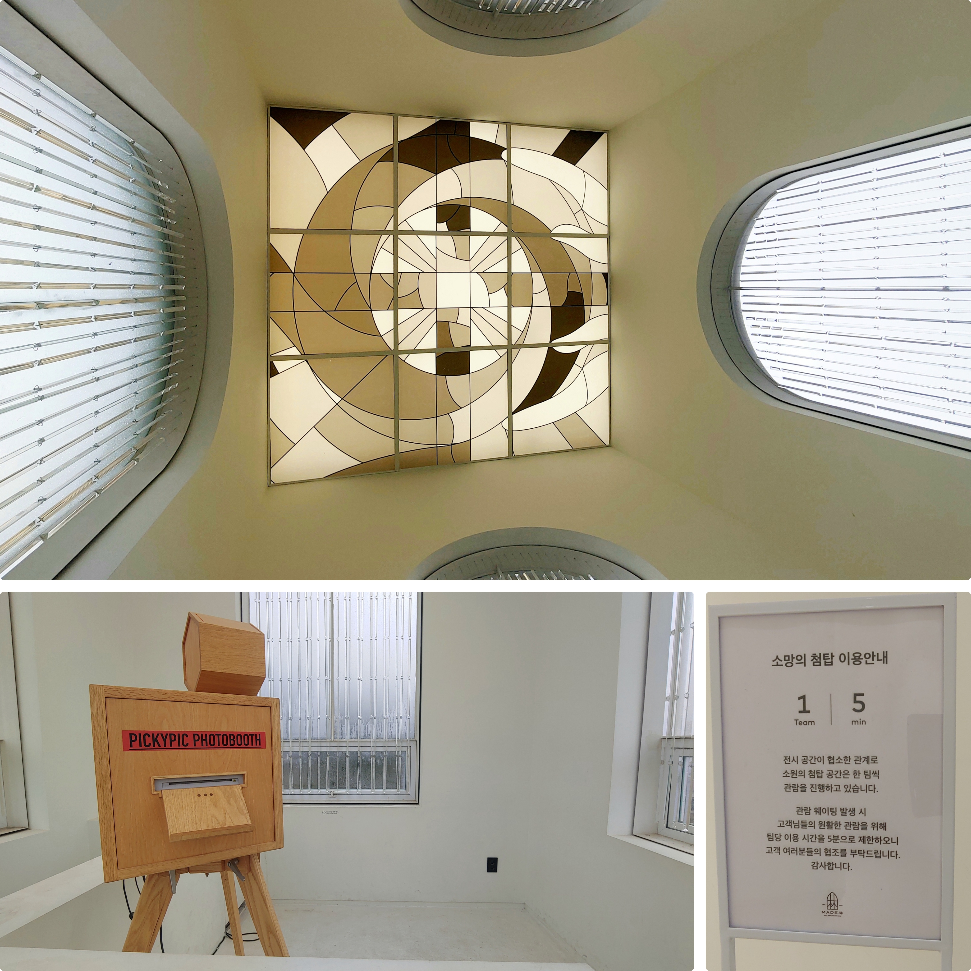 꼭대기 층의 실내에는 사진을 찍기 위한 공간이 있다.
