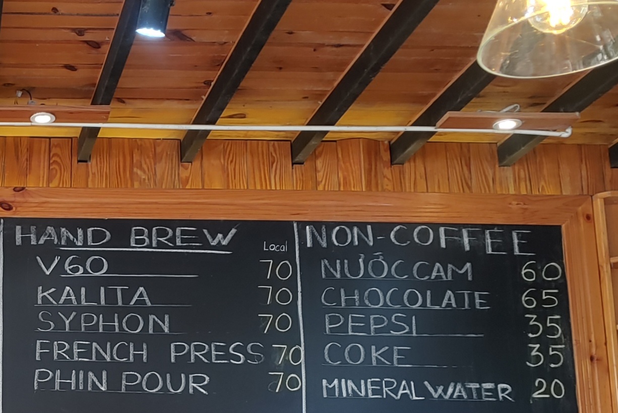 음료가격은 베트남 관광지 카페 수준으로 한국에 비해서는 낮은 편이다.