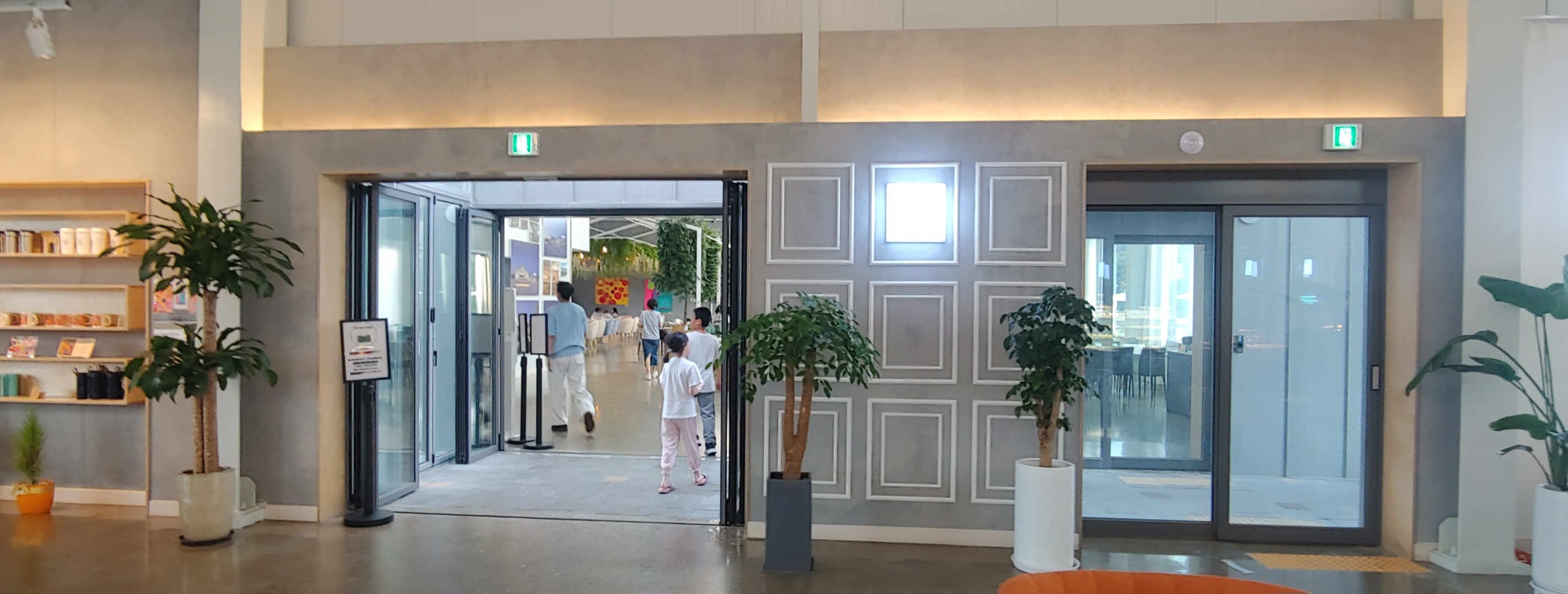 카운터 반대편에 B동과 연결되는 유리문이 있다.