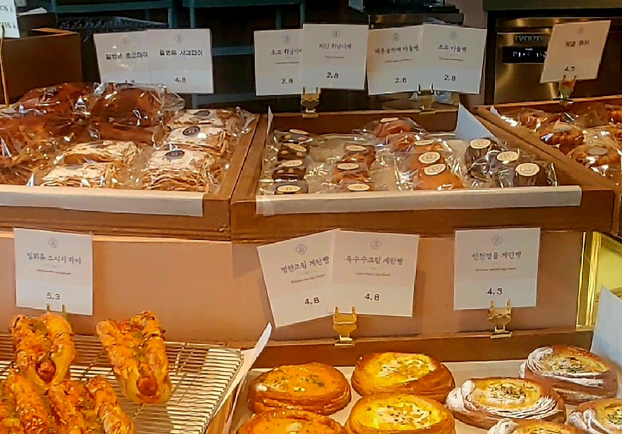 빵 가격대는 교외의 초대형 베이커리 카페에 비해서는 낮은 편이다.
