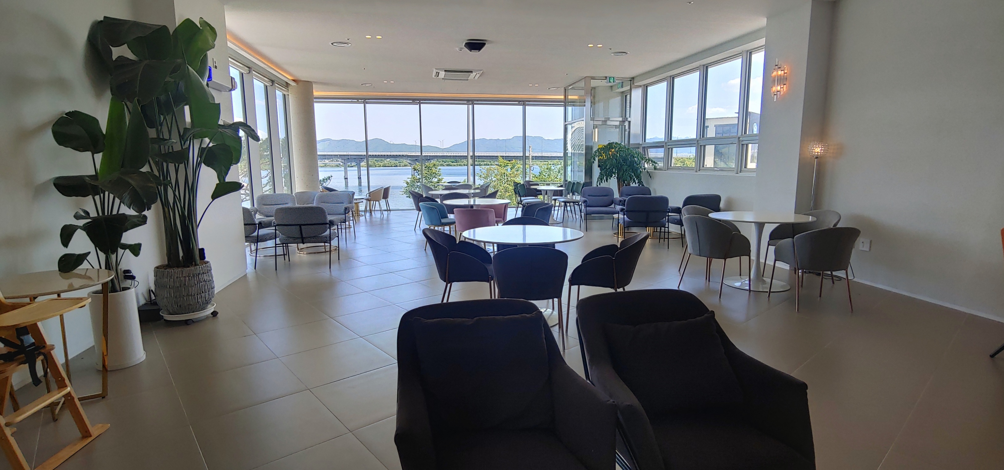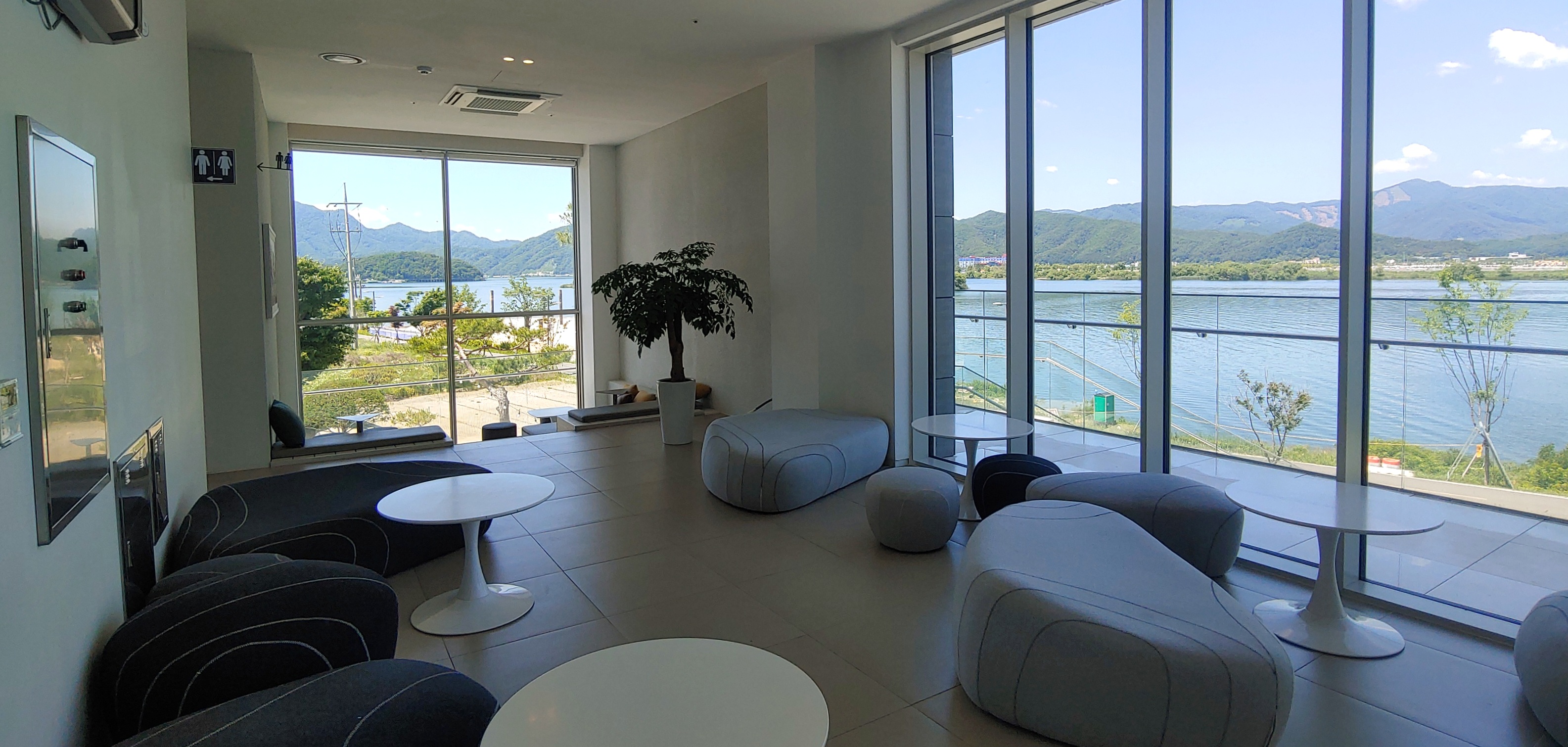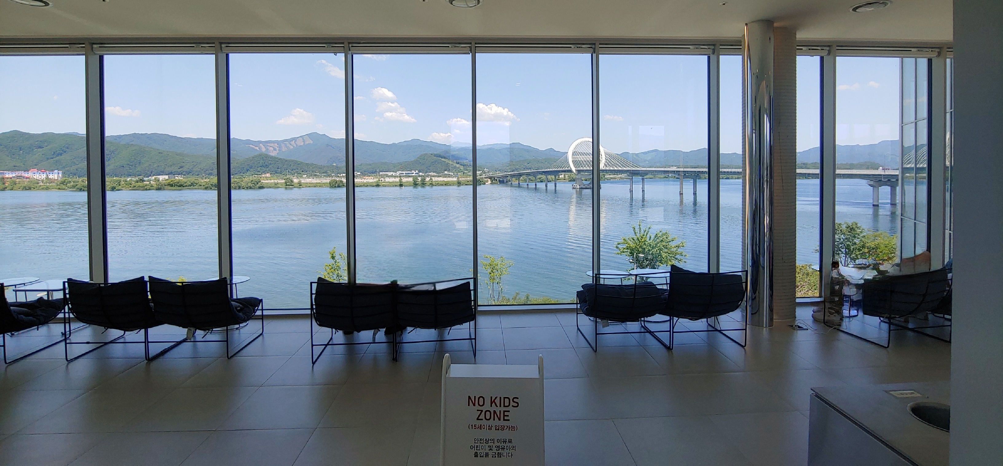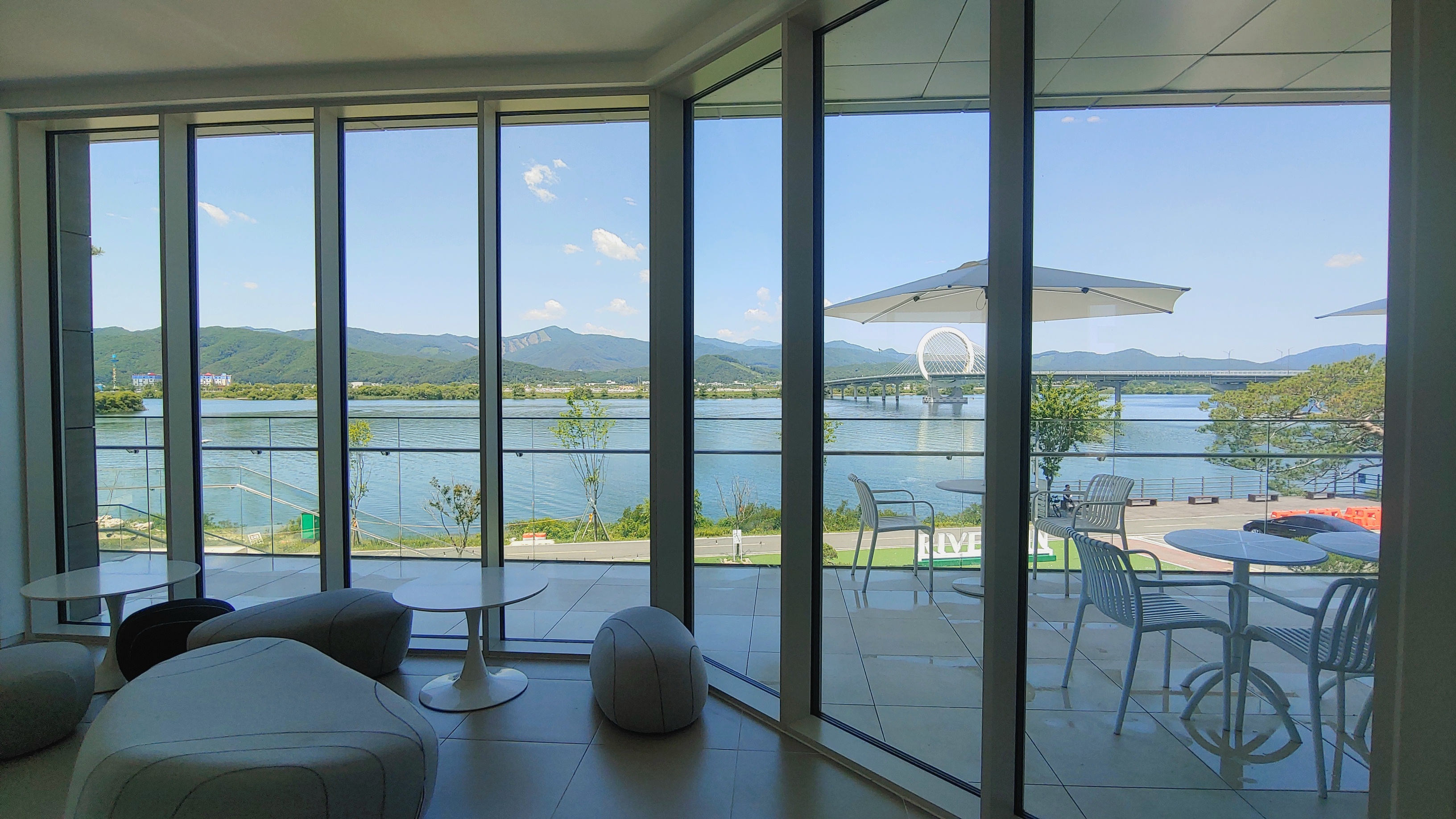 3층은 통창을 통해서 의암호와 춘천대교를 즐길 수 있다.