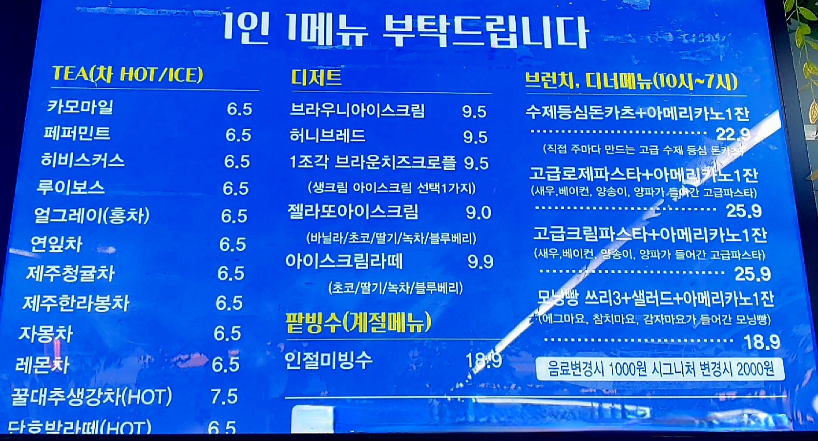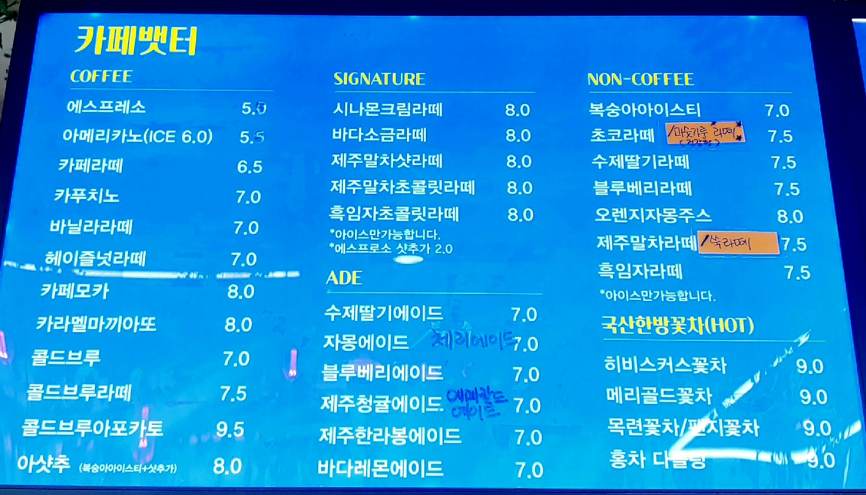음료의 가격은 구읍뱃터 오션뷰 카페 수준이다.