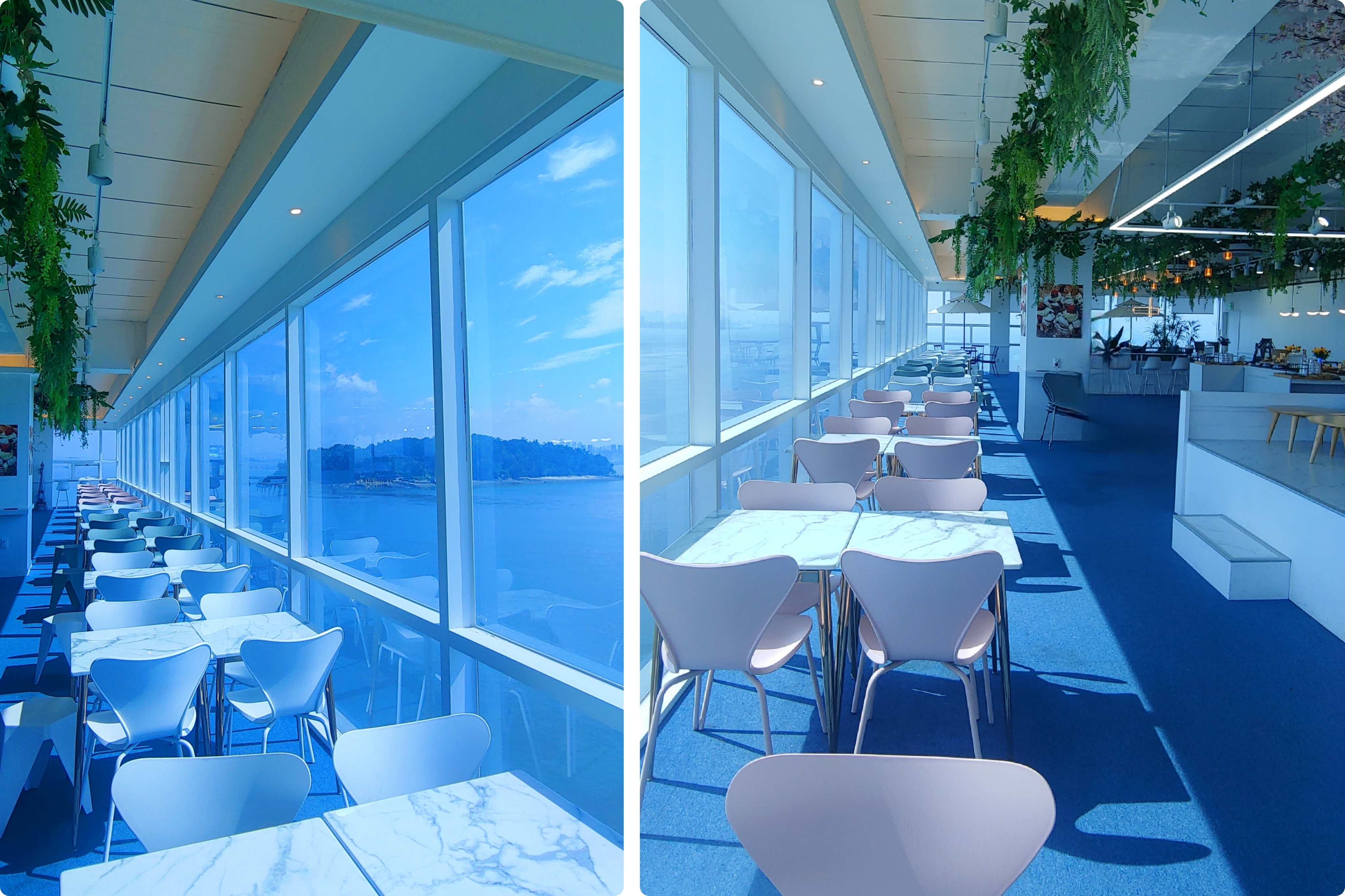 카운터가 있는 쪽 벽을 제외하면 3면이 모두 바다를 향한 통창이다.