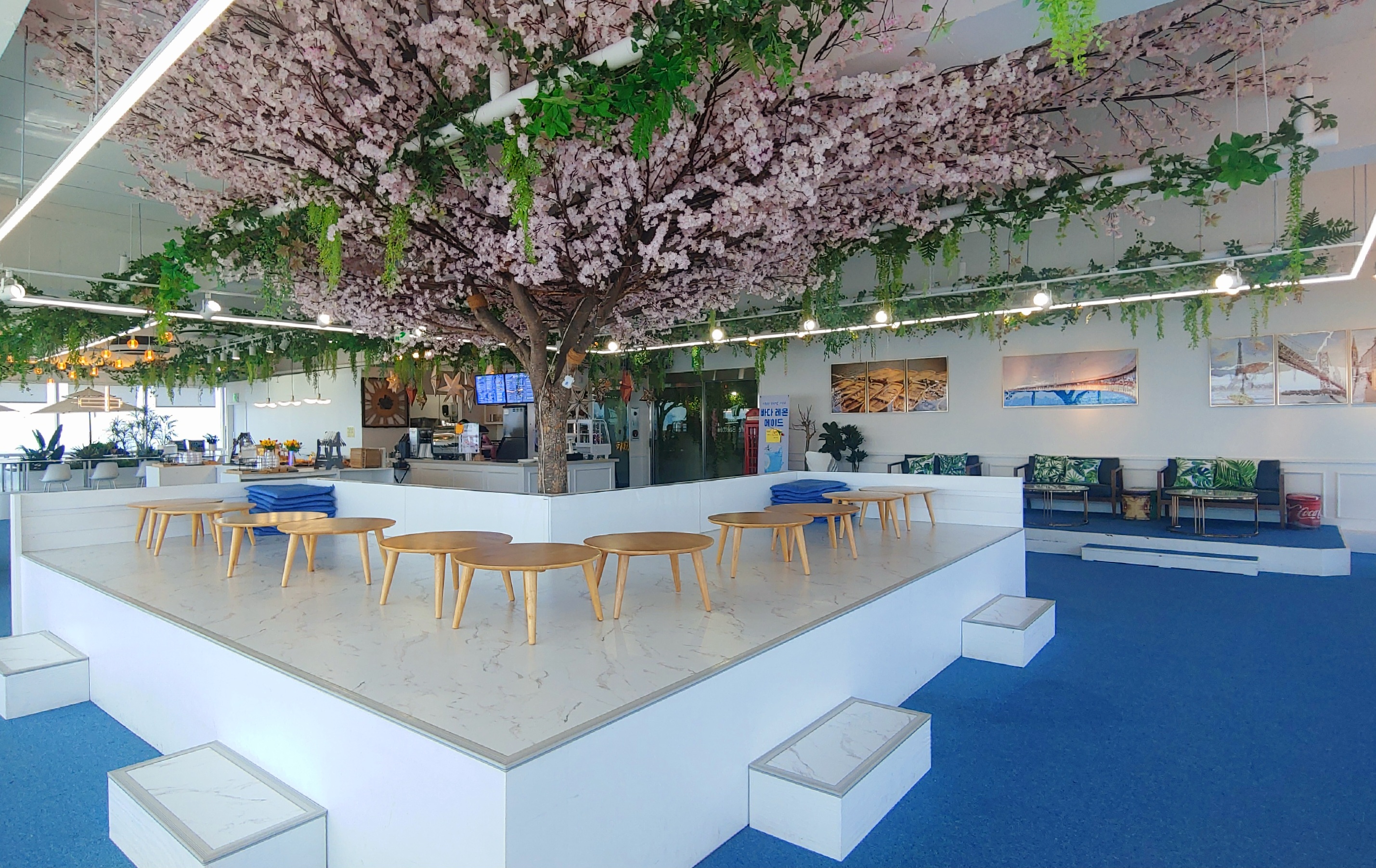 카페 입구를 들어서면 왼쪽으로 벚꽃나무 장식이 보인다.