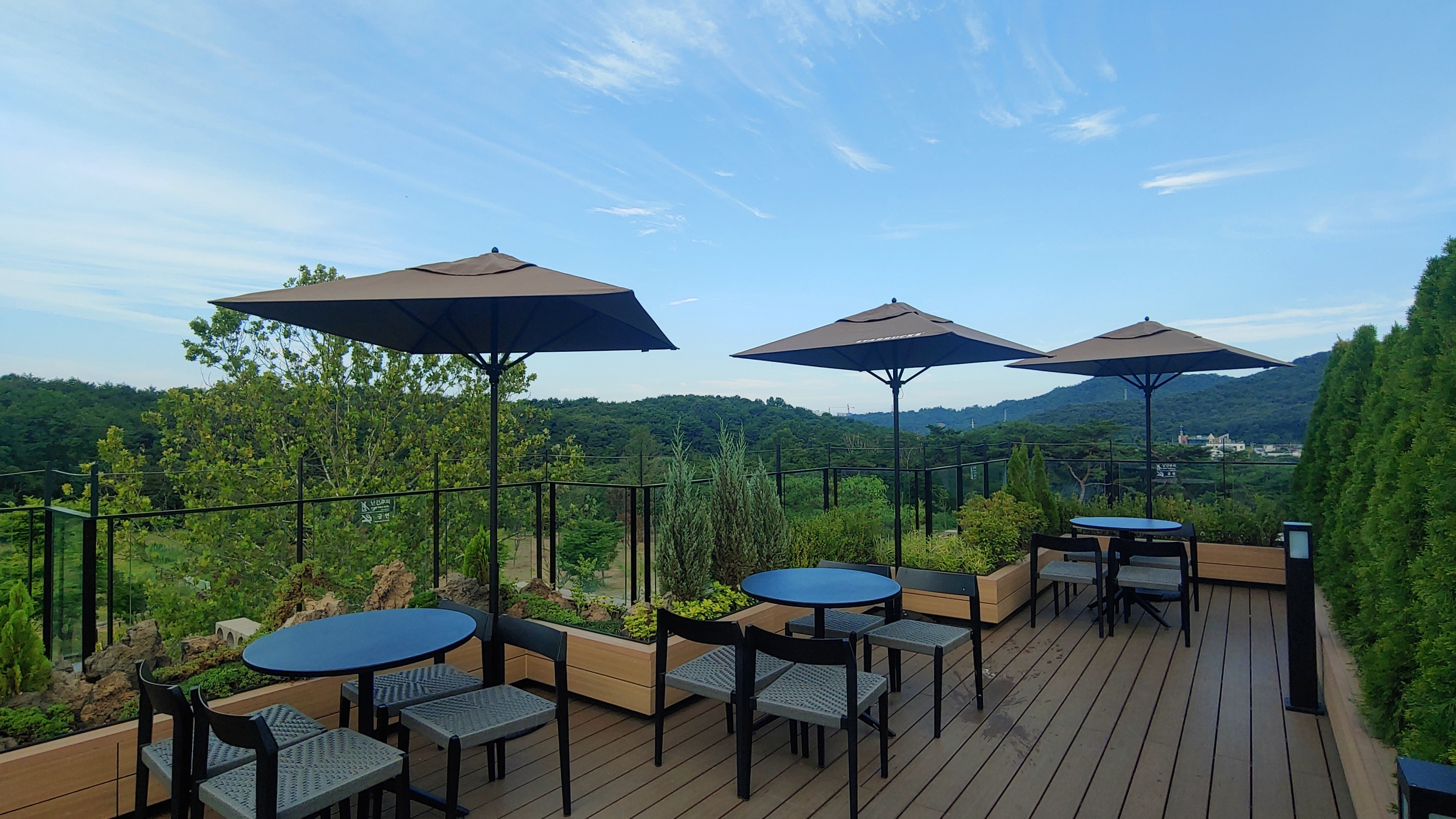 1층보다 더 많은 자리가 있어서 날씨가 좋은 날 북한산을 바라보면 커피를 즐기기 좋다.