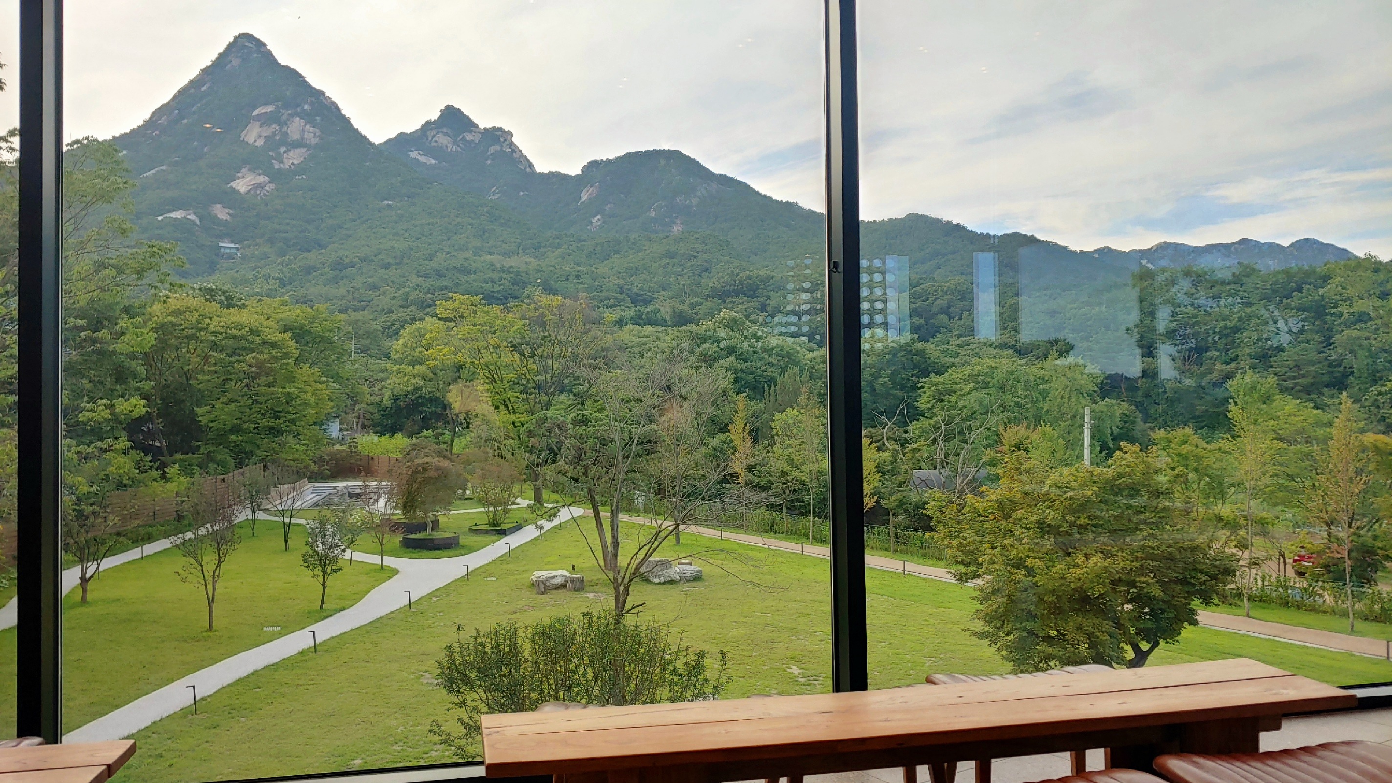 북한산을 향한 통창 앞의 자리는 자리를 잡기가 어려울 정도로 인기가 많다.