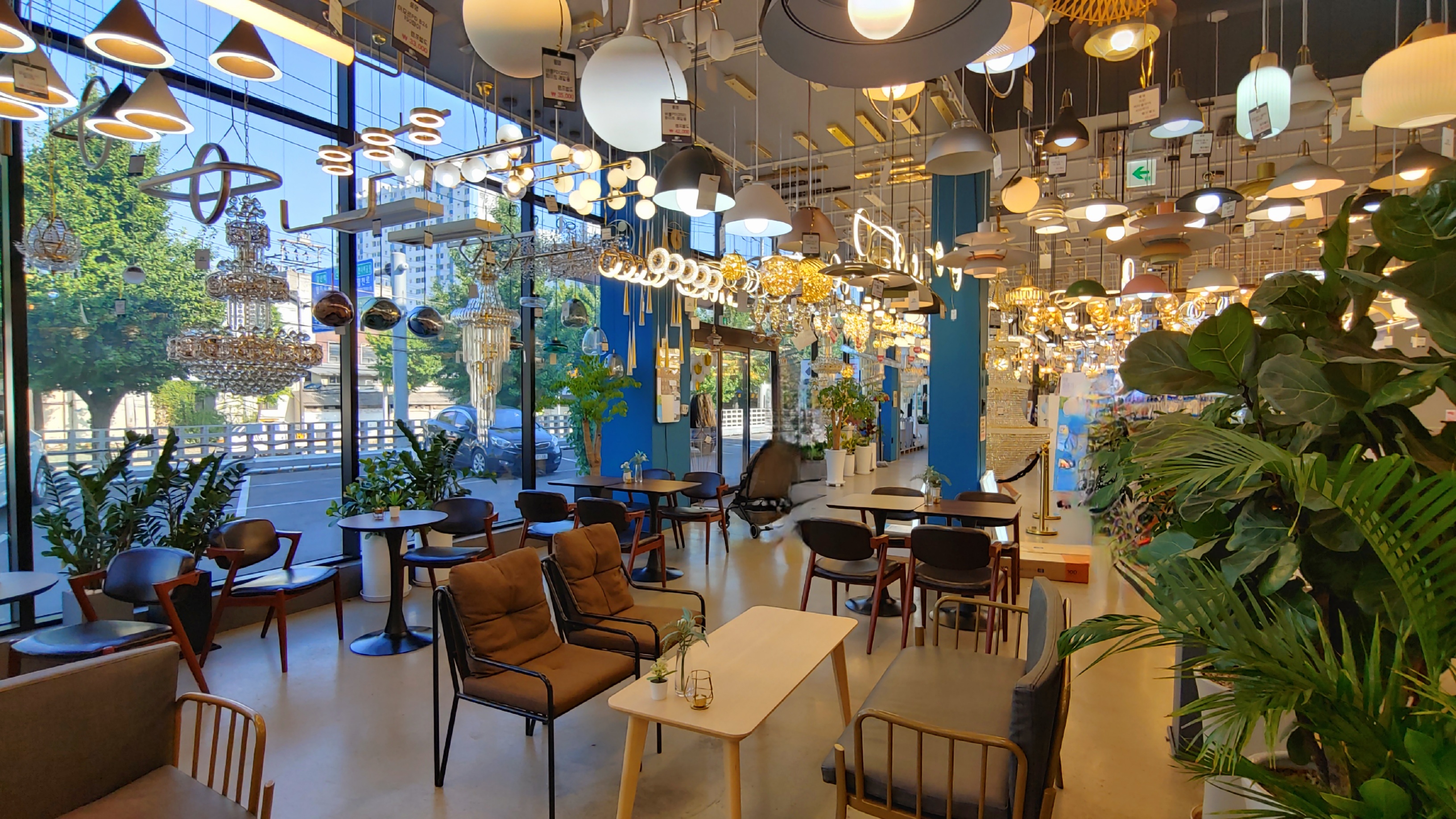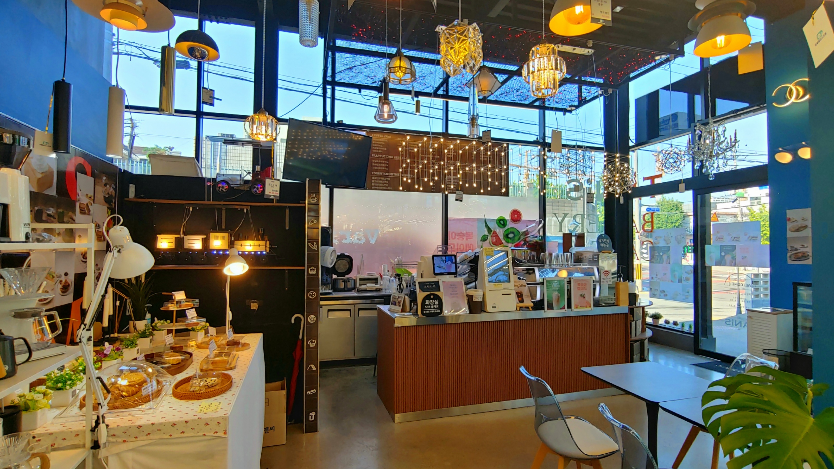 카페 크기가 아주 크지는 않지만 조명가게는 인천 최대 규모이므로 커피를 마시고 다양한 조명을 구경할 수 있다.