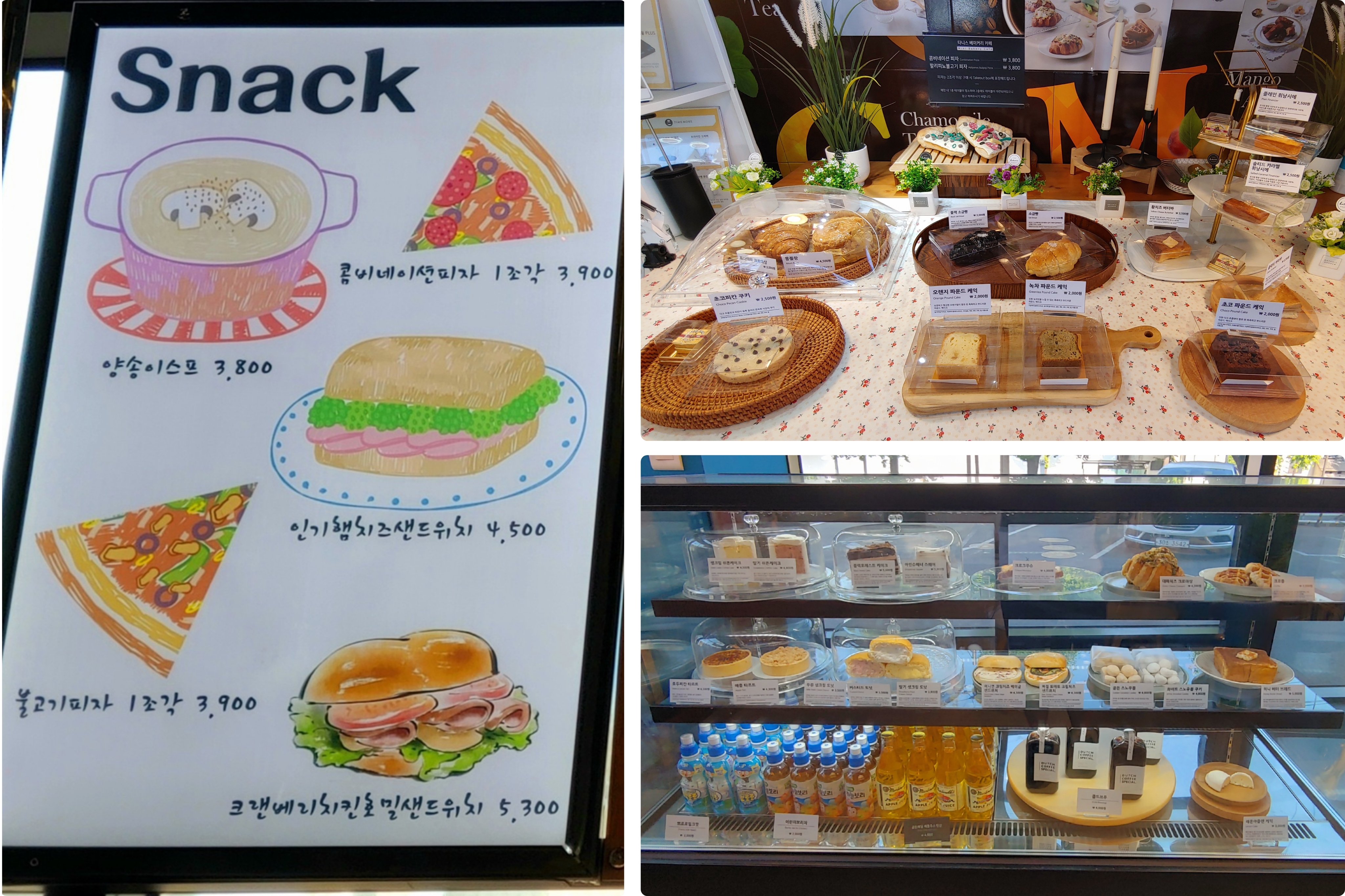 타니스는 전문적인 베이커리 카페는 아니지만 간단한 빵, 조각 케이크와 함께 스낵 메뉴를 판매한다.