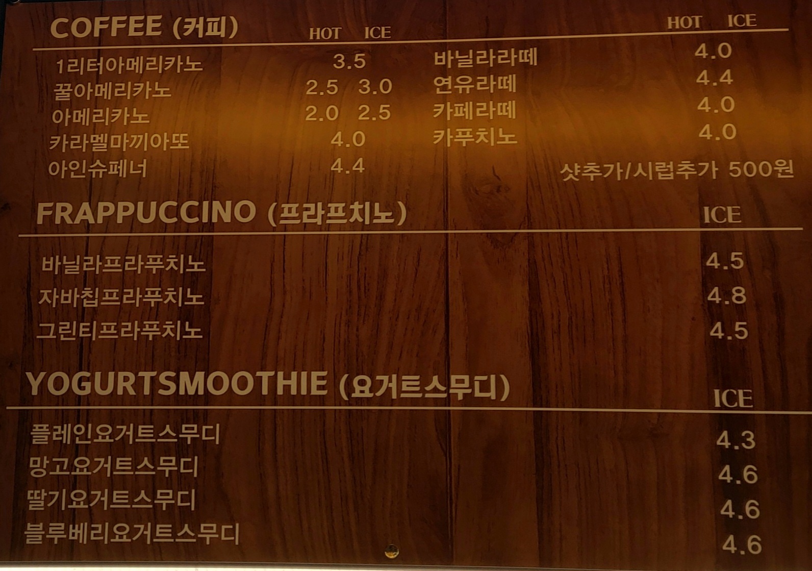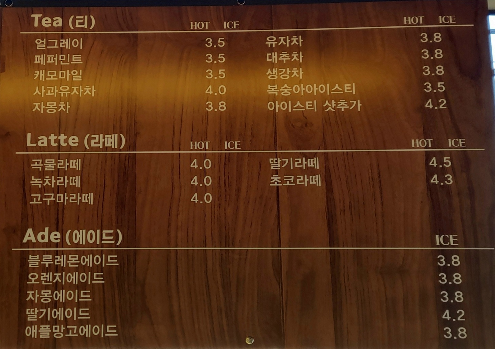 음료 가격은 프랜차이즈 카페보다 낮은 수준이다.