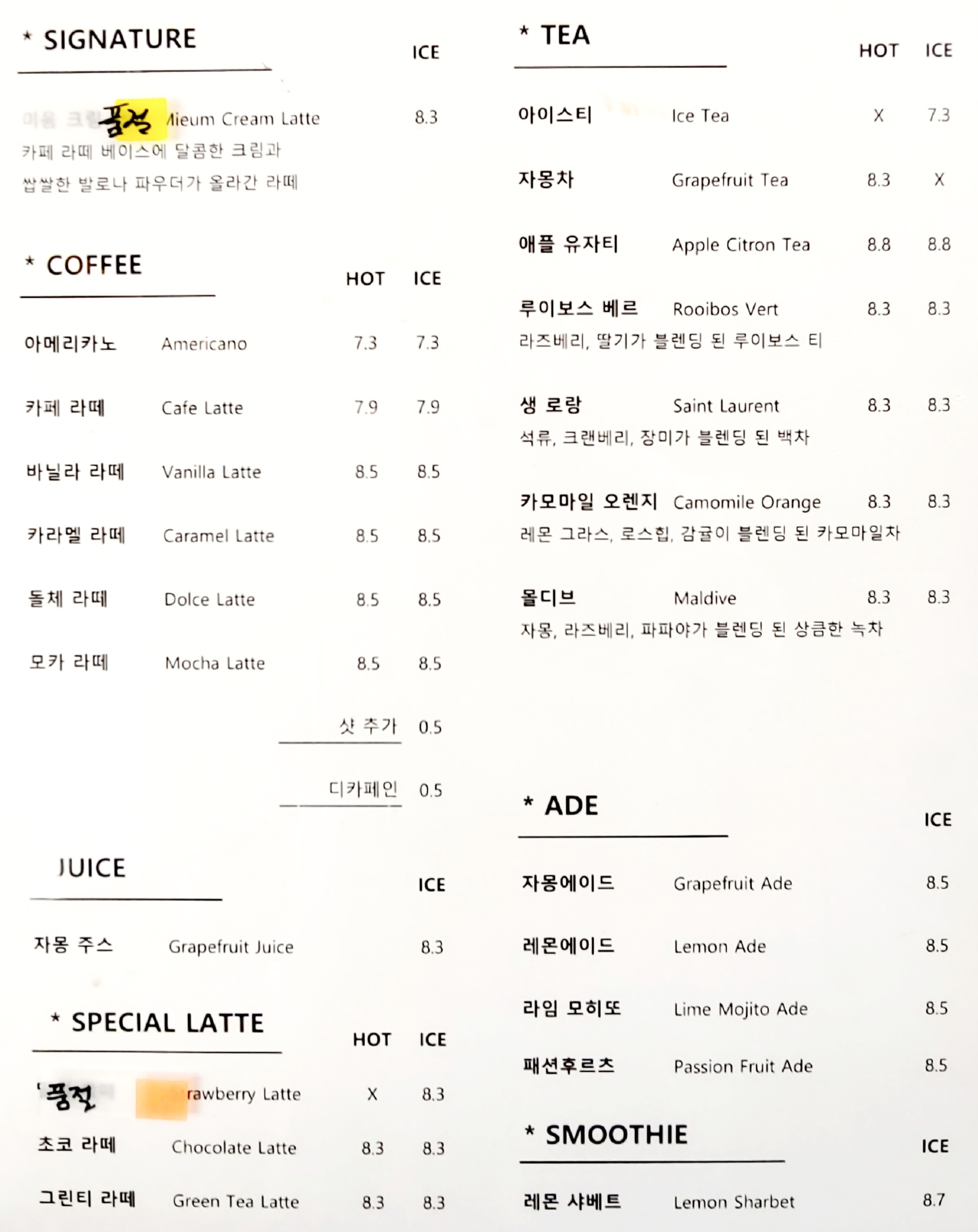 빵과 음료의 가격은 바닷가 오션뷰 대형 카페 수준으로 높다.