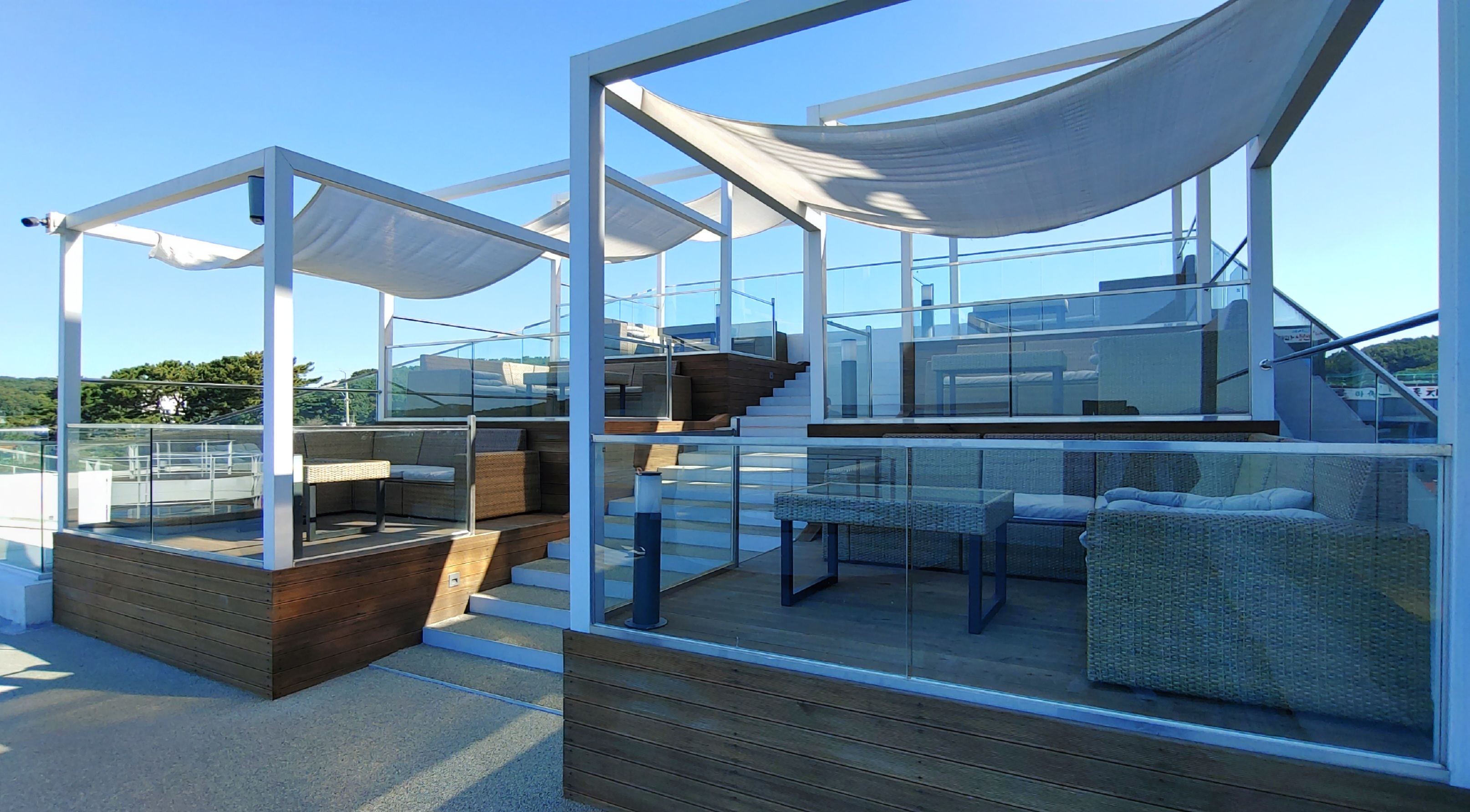 루프탑에는 바다를 향해서 다양한 형태의 좌석이 있다.