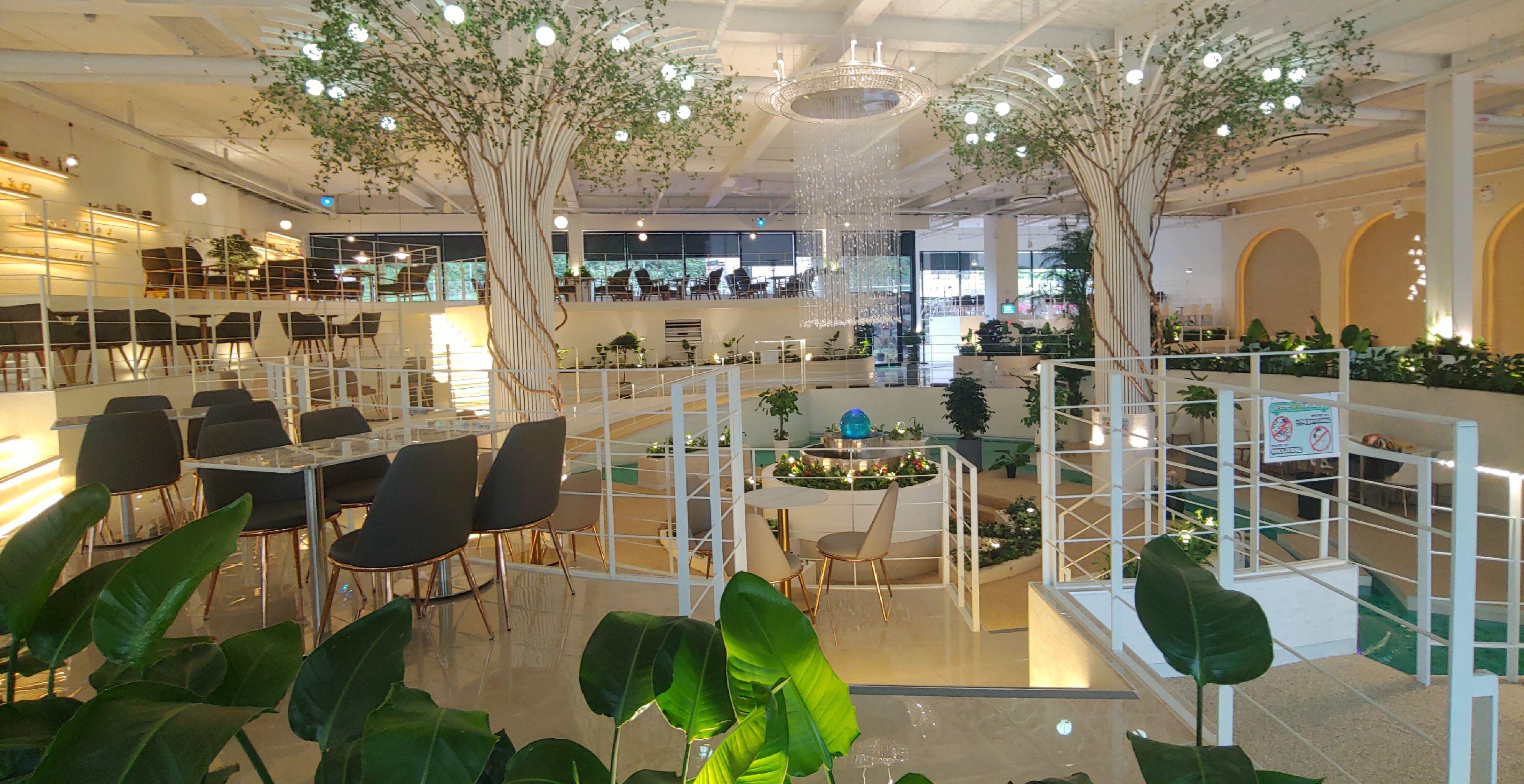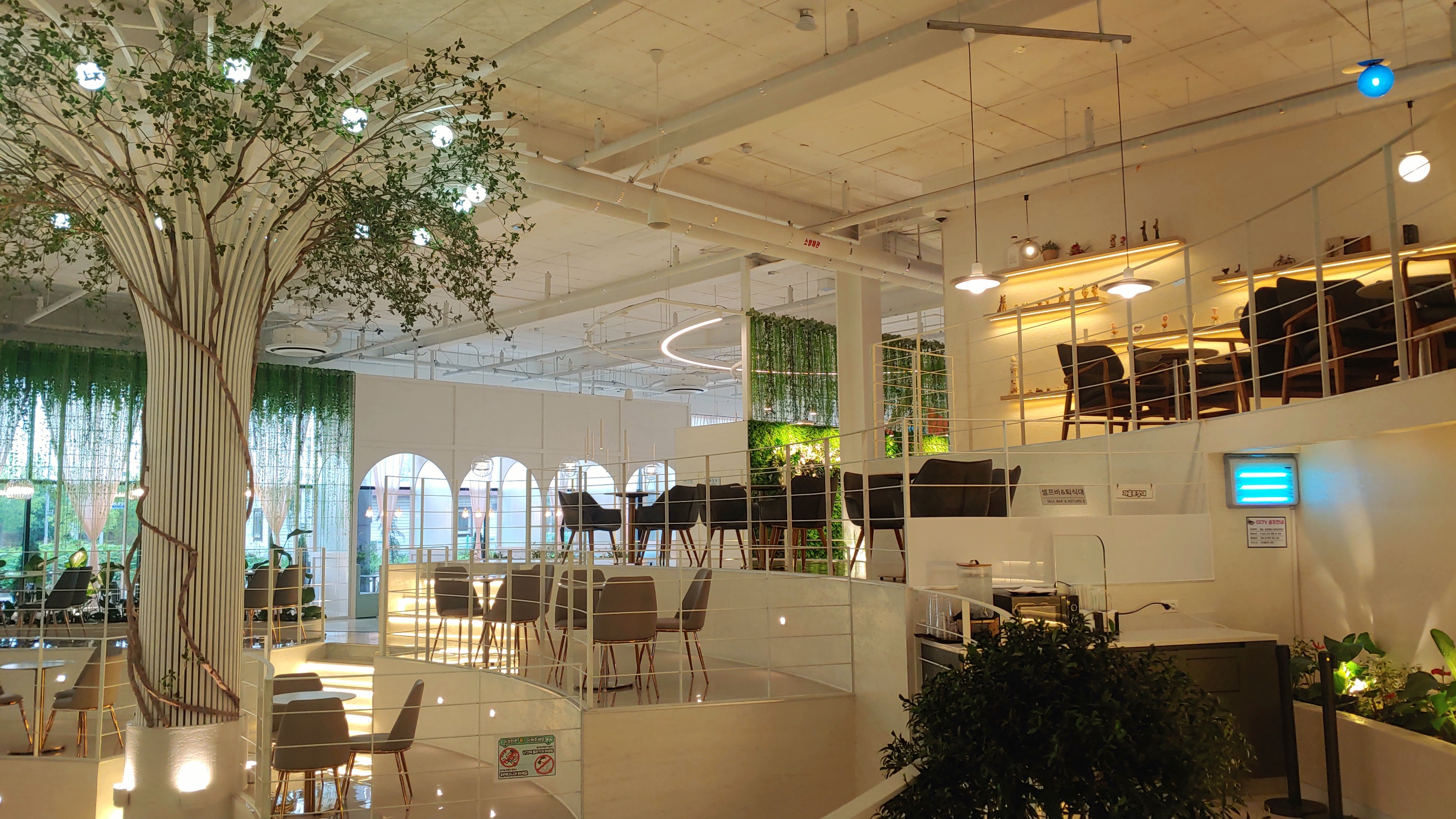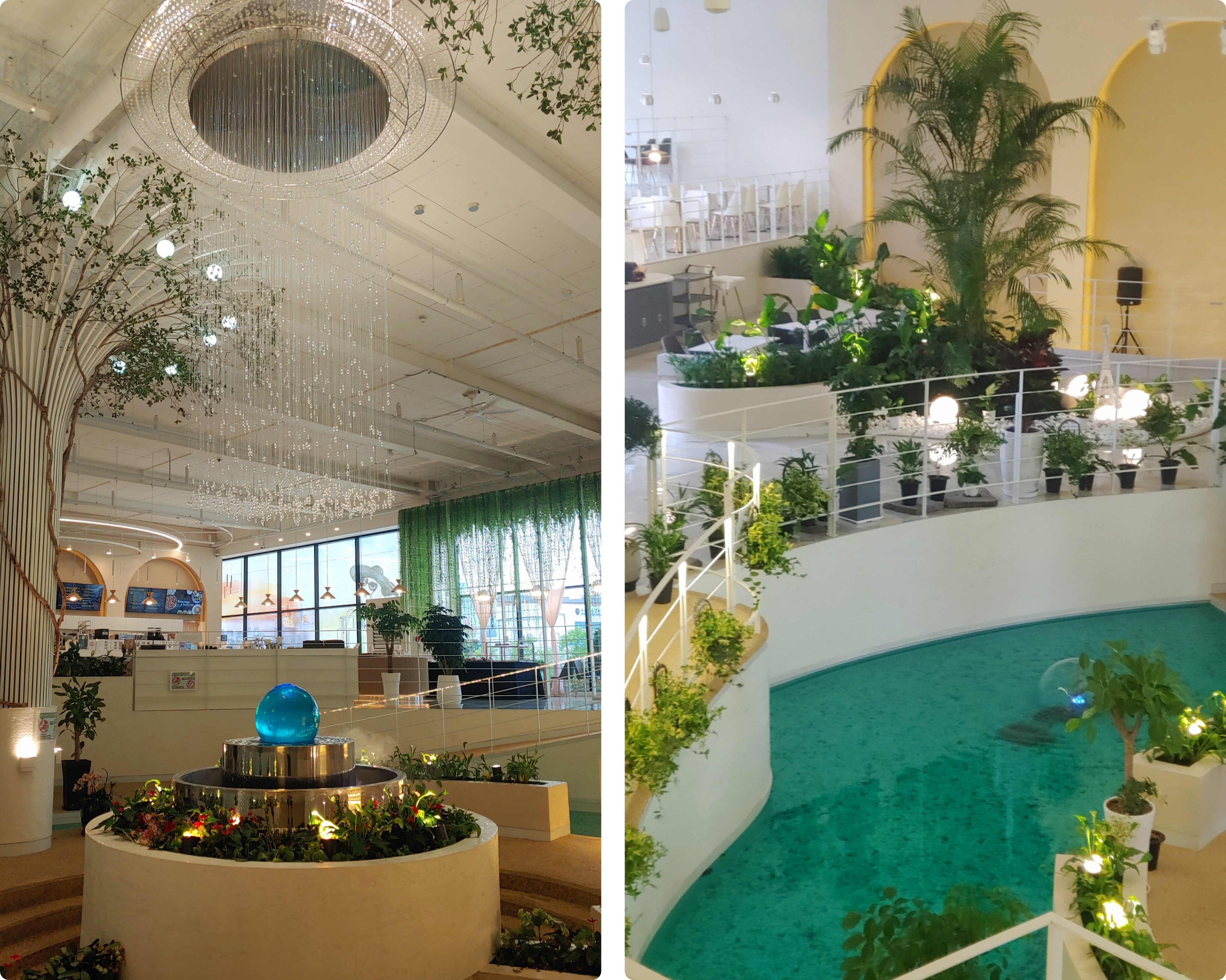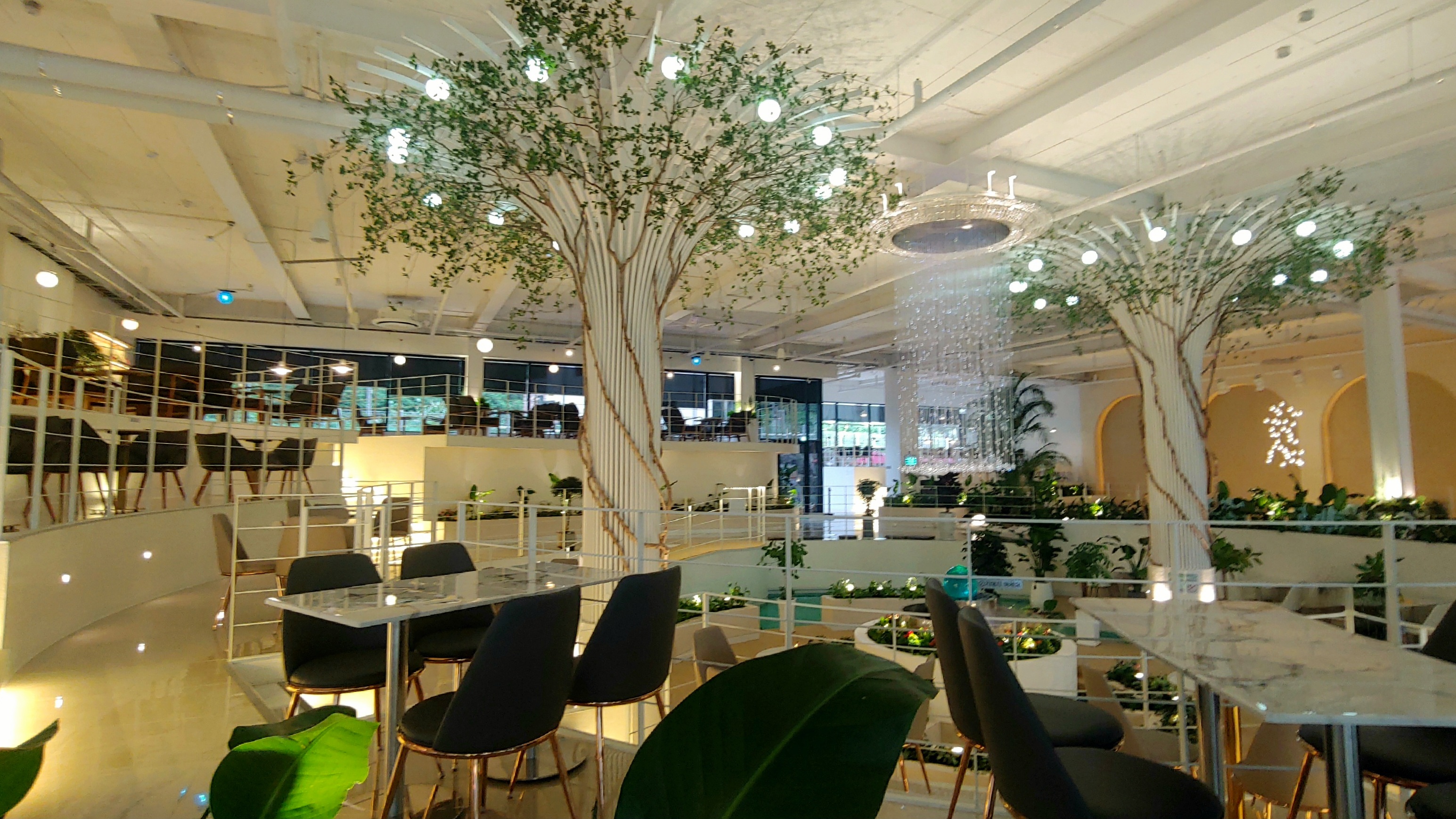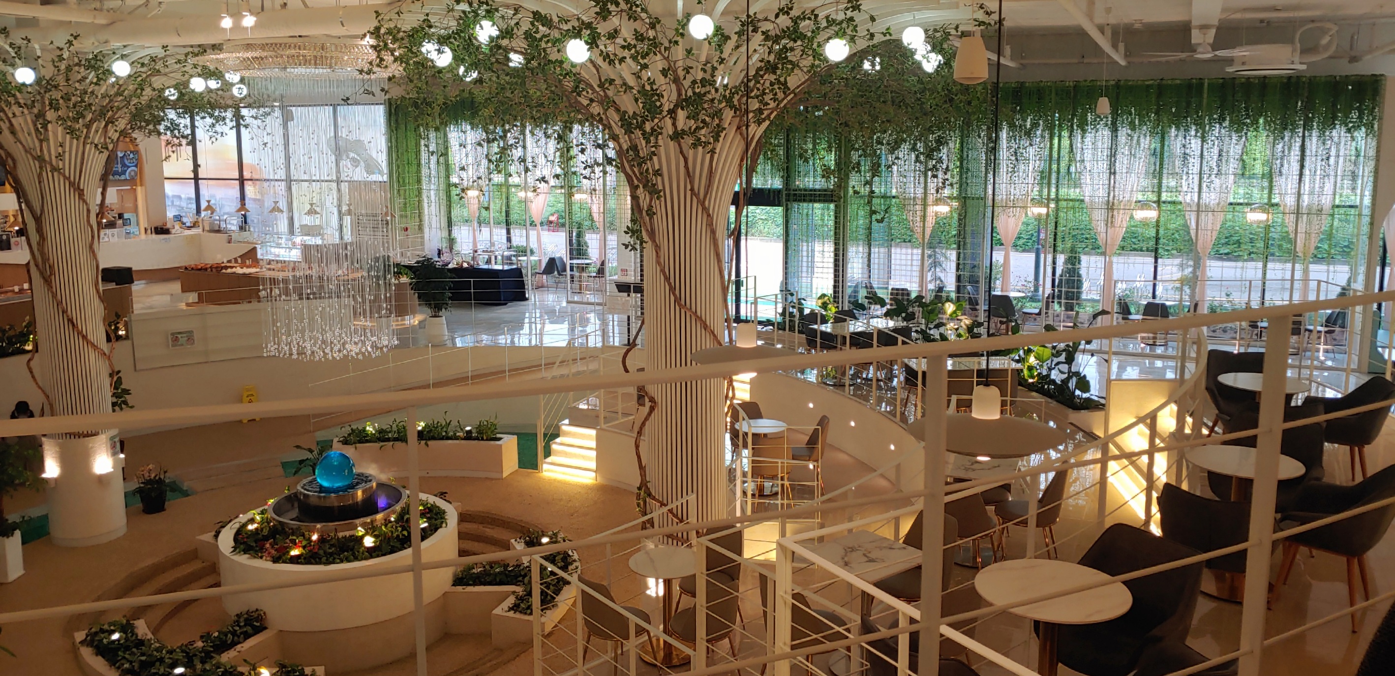 엘리베이터 왼쪽은 나무 모양의 기둥이 받치고 있는 오픈된 공간이 중심이다.