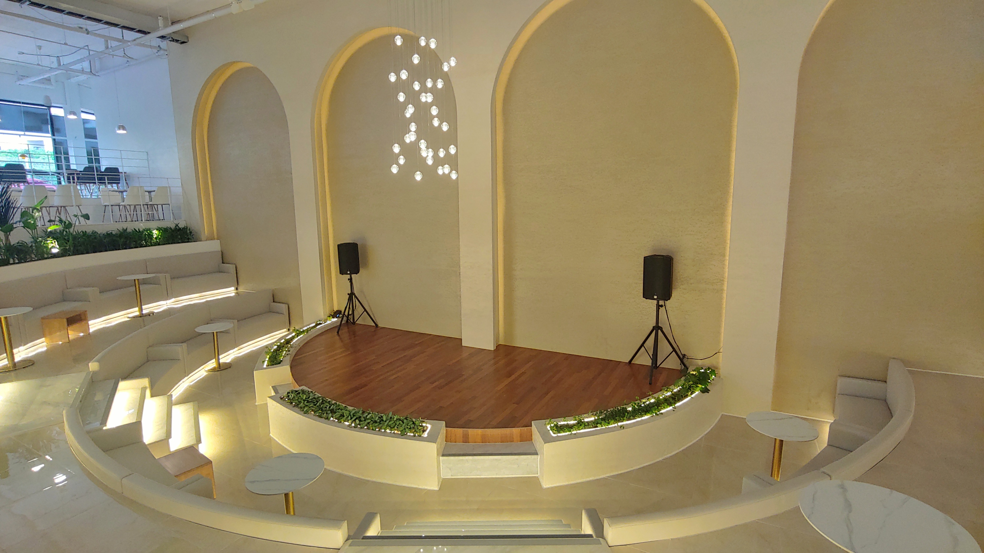 온더플로우 1층은 넓은 공간에 다양한 형태의 좌석이 있다.