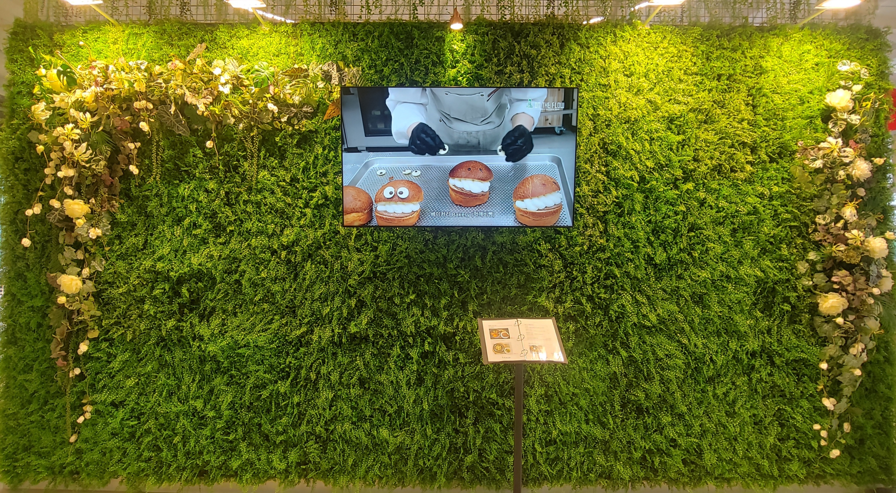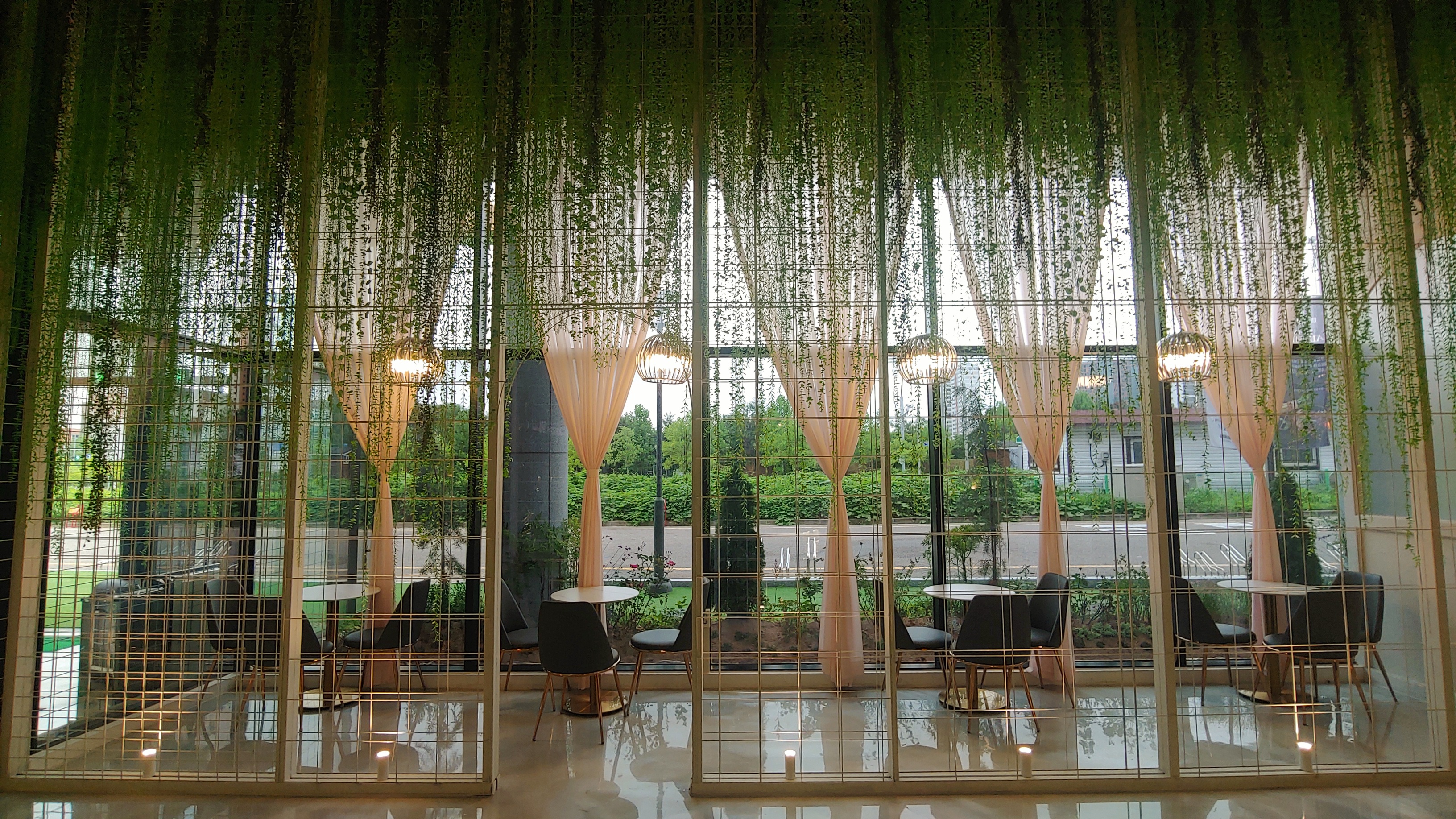 엘리베이터 1층을 나서면 초록색 잎으로 장식된 벽이 보인다.
