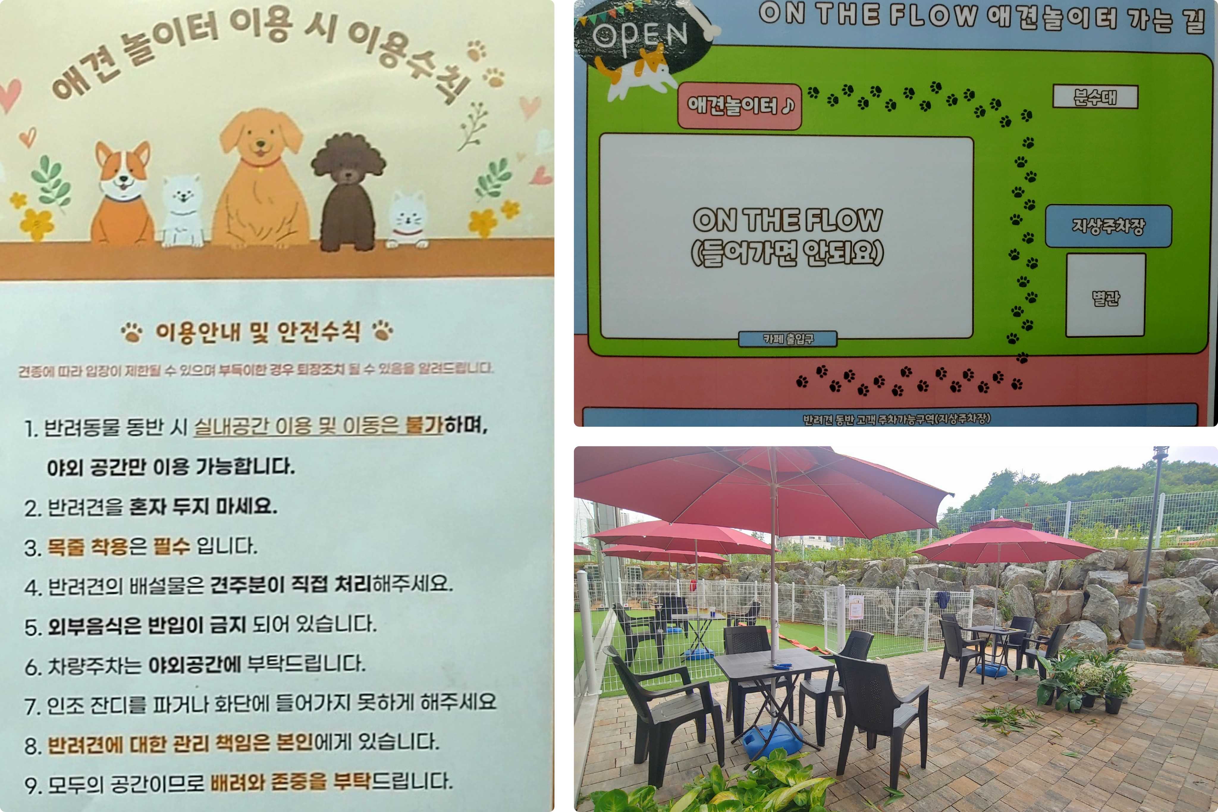 온더플로우 실내는 반려견 동반이 불가능하지만 야외에 애견 놀이터가 있다.