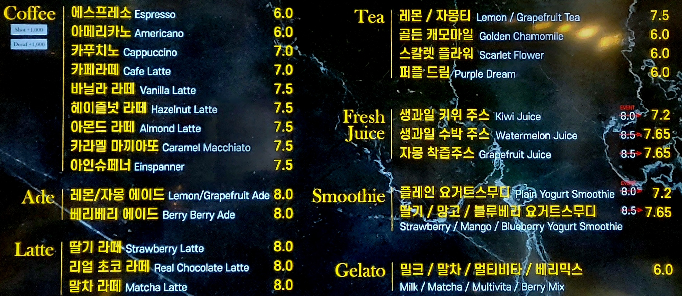 음료와 음식 가격은 교외에 있는 대형 카페 수준이다.