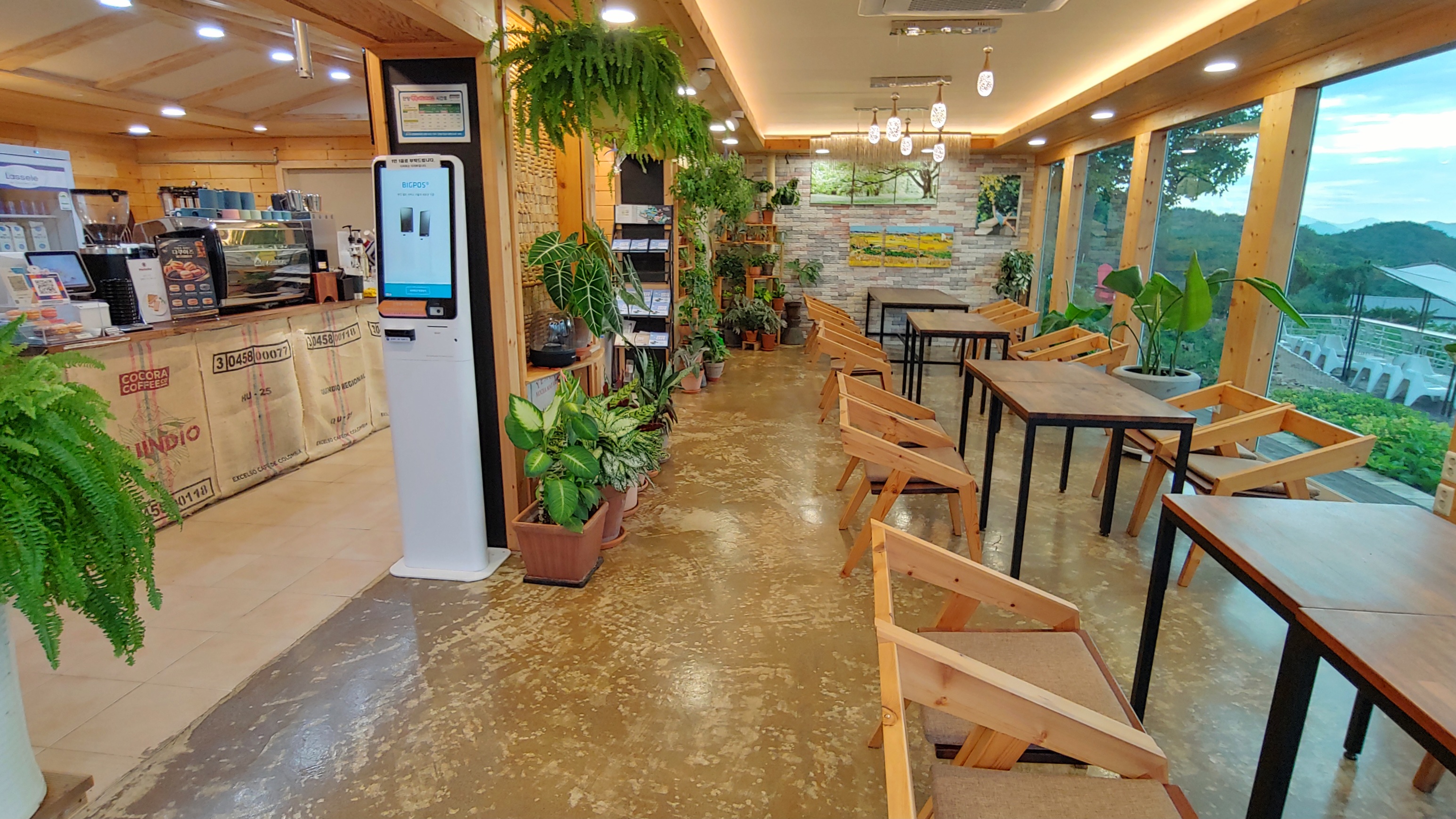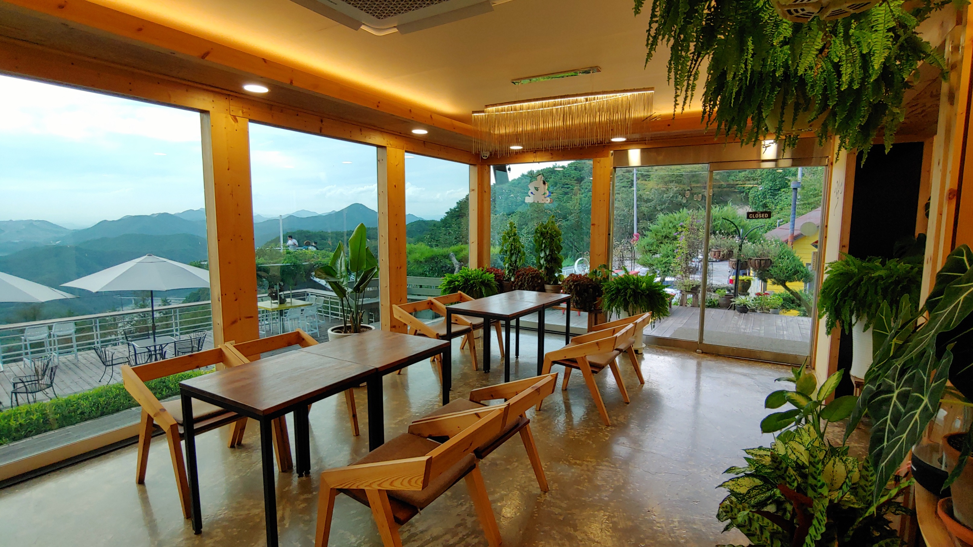 유형 산과 구름 뷰, 카페, 데크, 키오스크, 진동벨