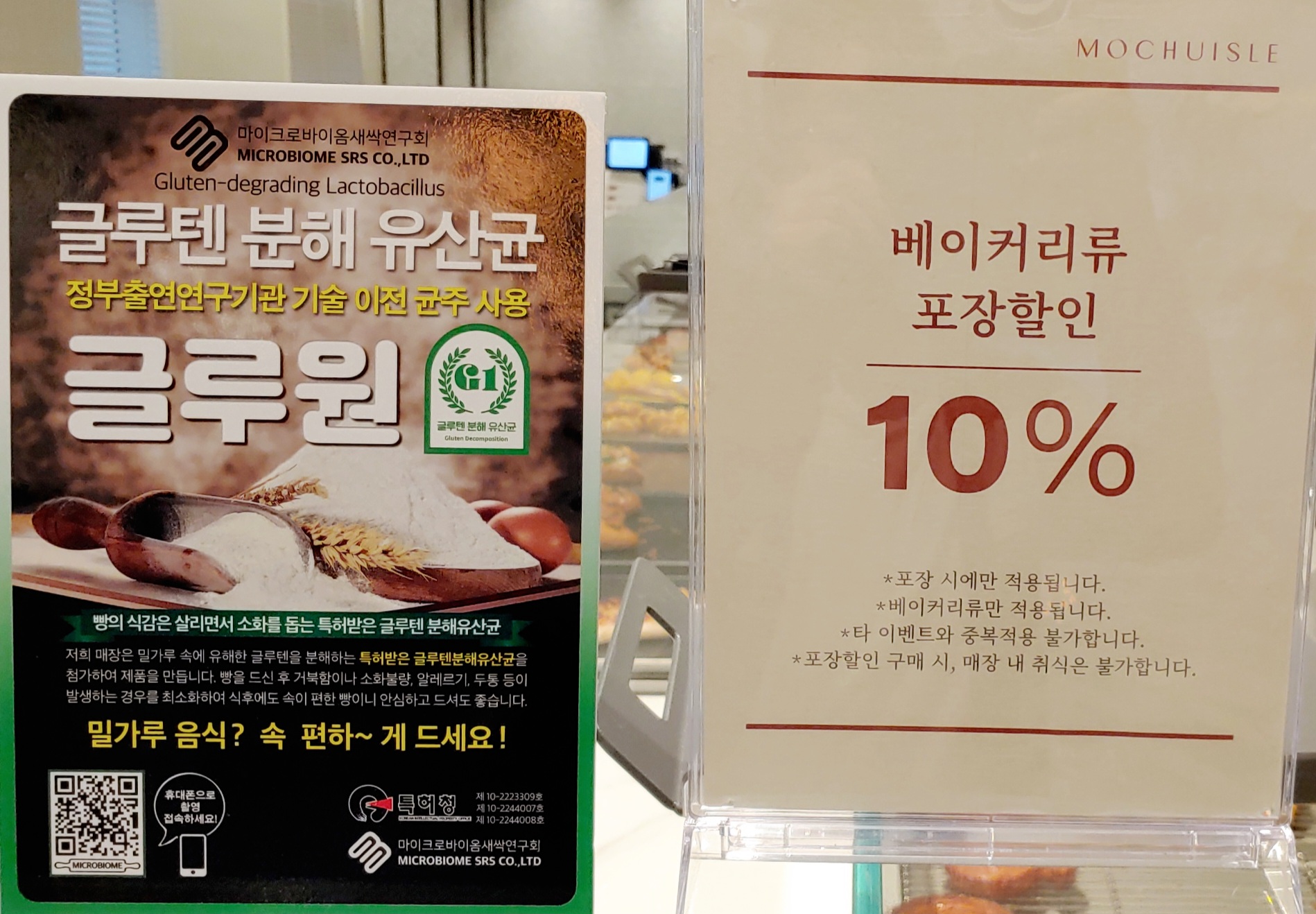 2층으로 올라가면 오른편 안쪽에 카운터가 보이고 그 앞에 빵 진열대가 있다.