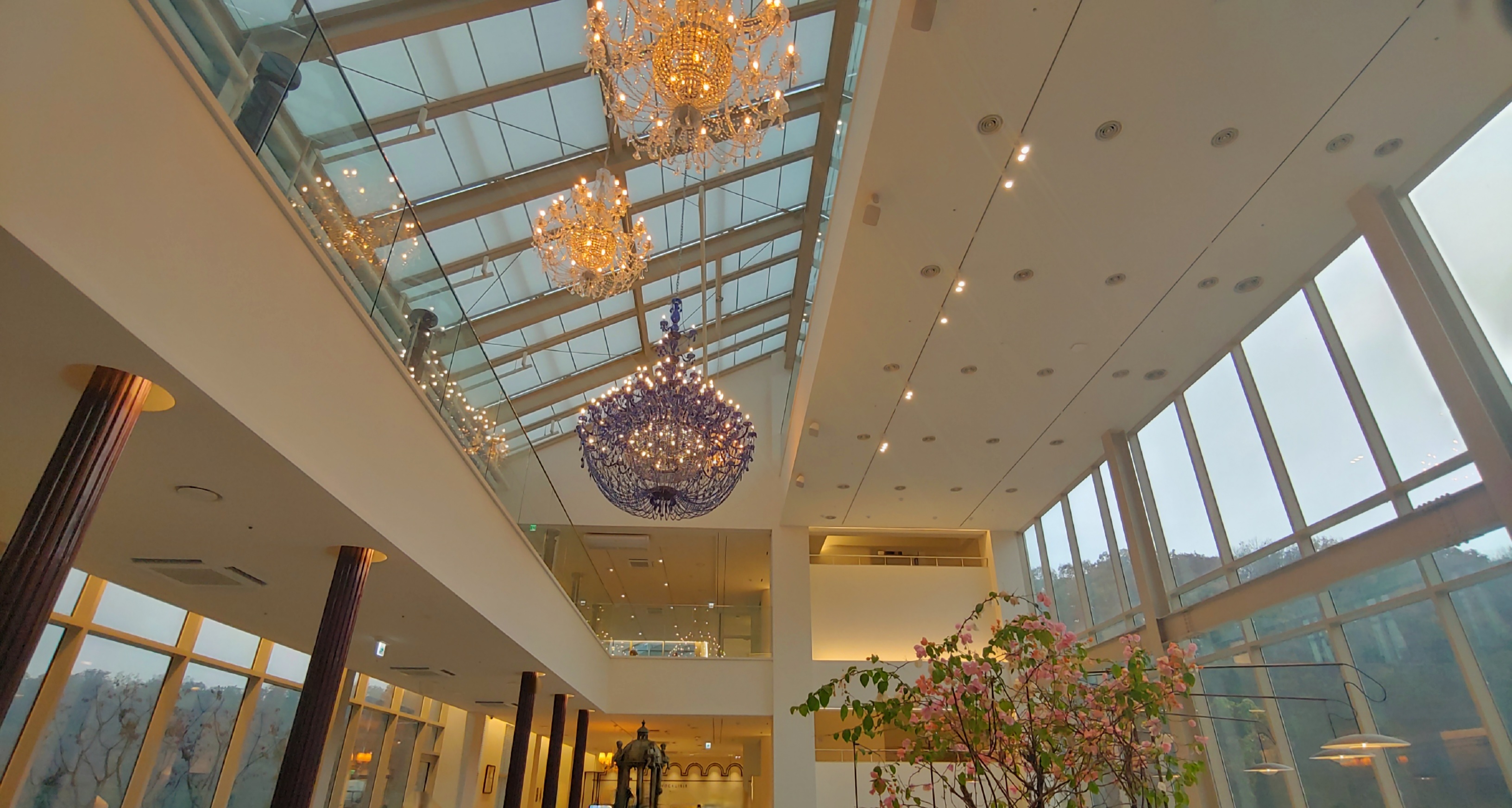 2층에서 위를 올려다보면 3층과 4층의 중앙부는 서로 반대편의 한쪽 창가에만 난간이 있다. 2층 가운데에서 3층과 4층을 거쳐서 지붕의 유리창이 보이는 구조로 개방감이 좋다.