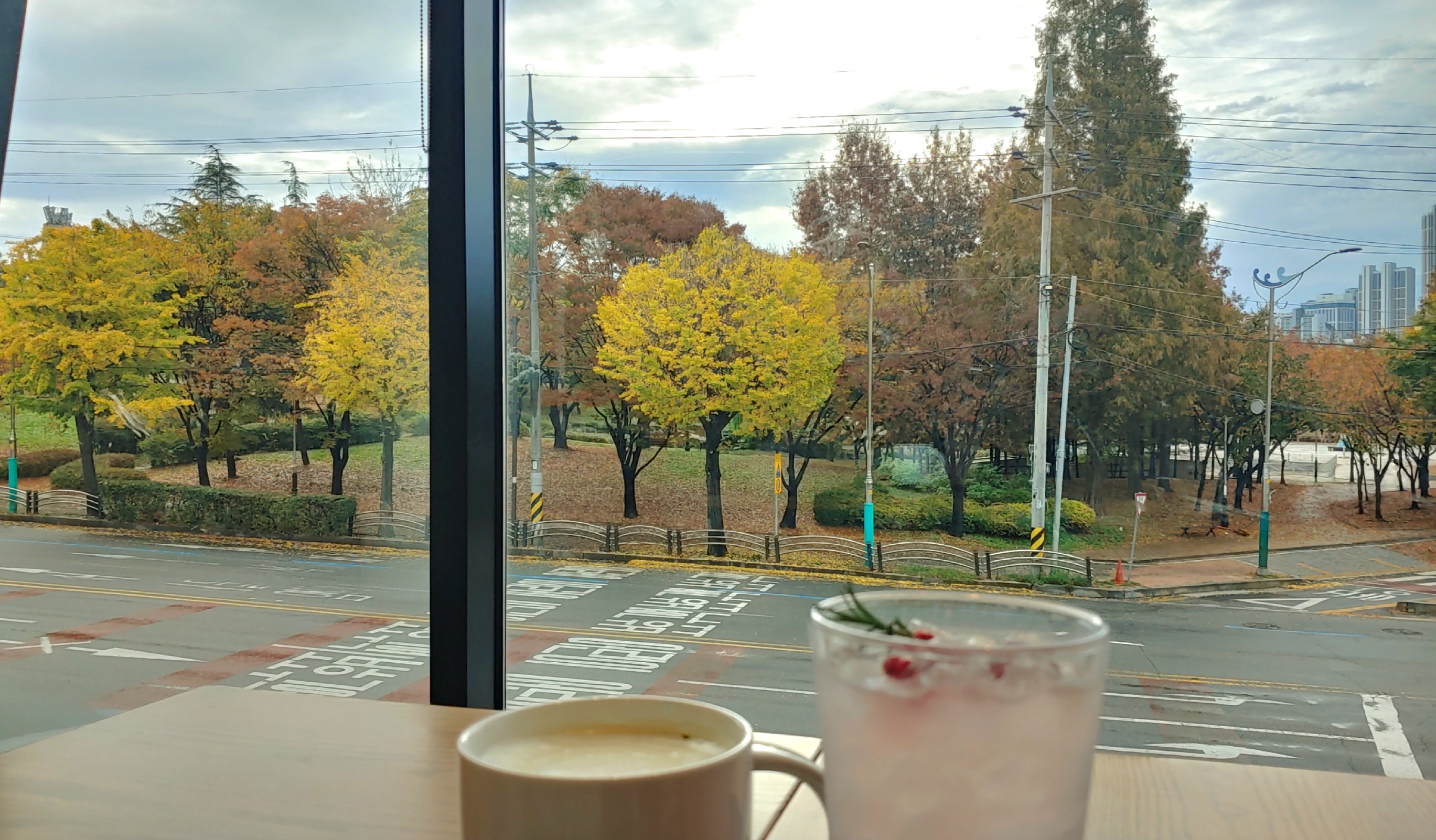 스타벅스 간석중앙공원점은 인천 중앙공원을 바라보면 커피를 즐길 수 있다는 점이 좋다.