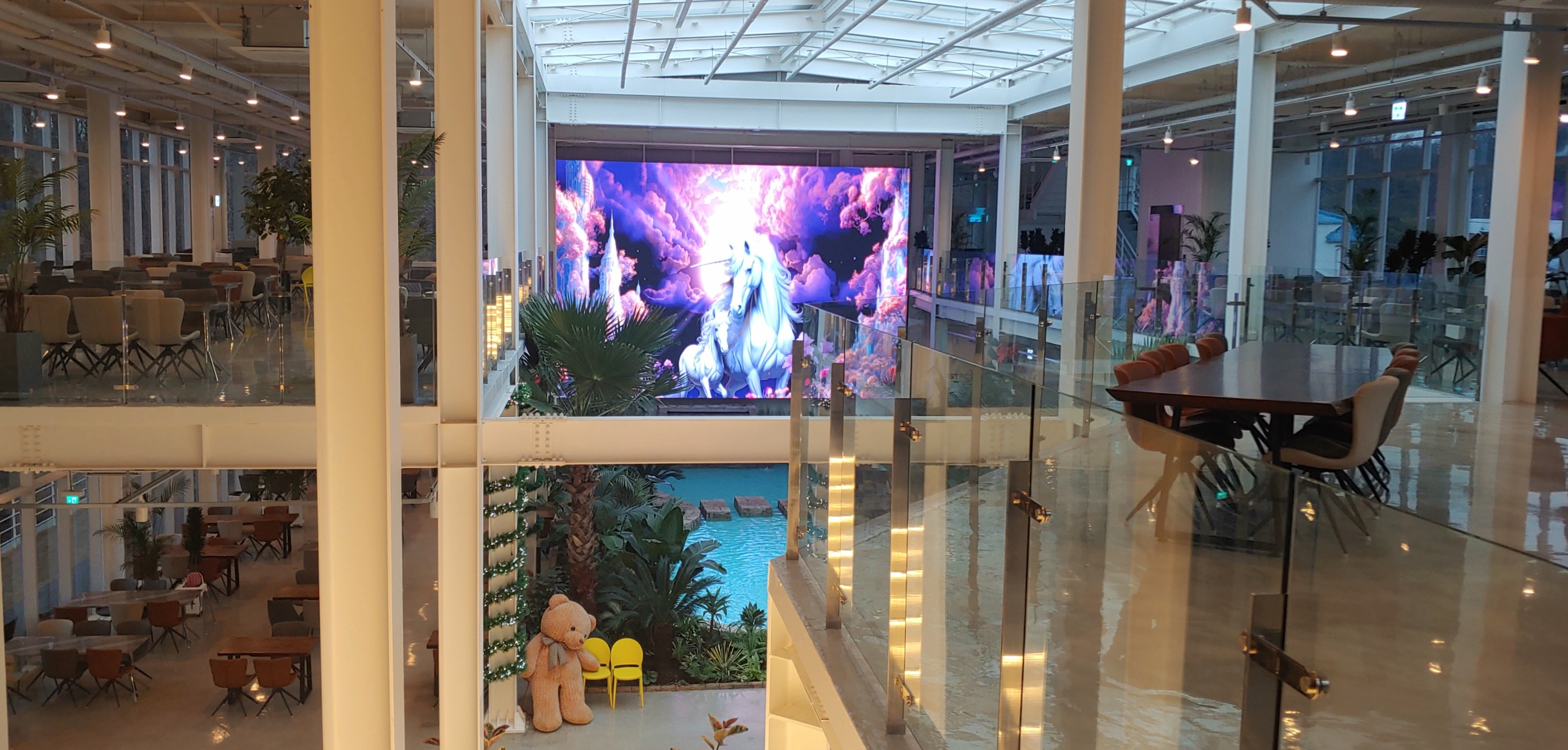 바로 이어서 보이는 실내 호수와 거대한 스크린이 가혜리의 메인 뷰이다.